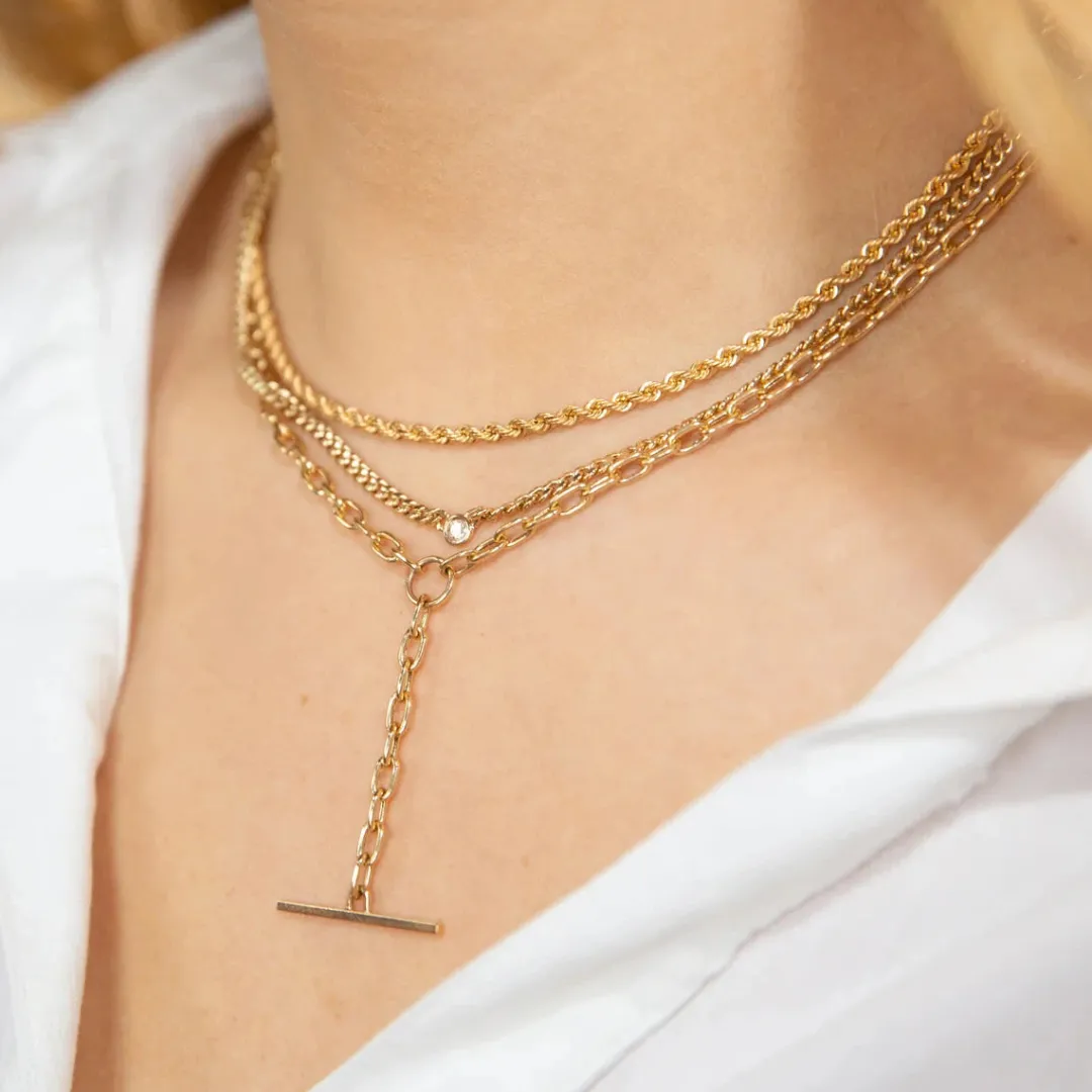 14k gold small hollow curb chain necklace with single floating diamond