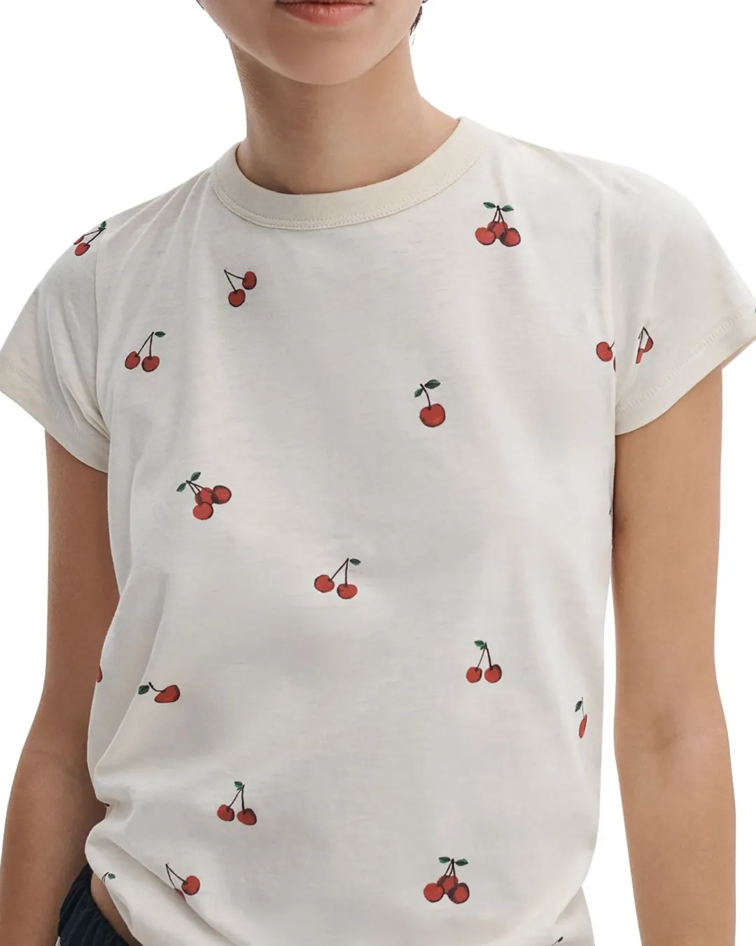 Cherries all over. Crafted entirely from long-staple Peruvian cotton renowned for its durability, softness, and nuanced visual texture. Cut for a classic fit and featuring red cherries printed throughout, it’s sure to be a favorite for spring.