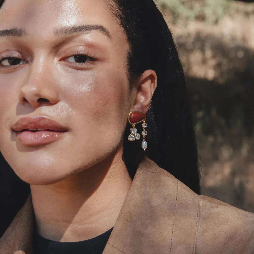 Elevate your style with the Arlet Earrings, expertly crafted using semi-precious stones, crystals, and freshwater pearls. Each element is thoughtfully combined to offer a sophisticated balance of natural beauty and refined elegance, making these earrings a timeless addition to any collection. Perfect for those who appreciate the unique allure of genuine materials paired with expert design.
