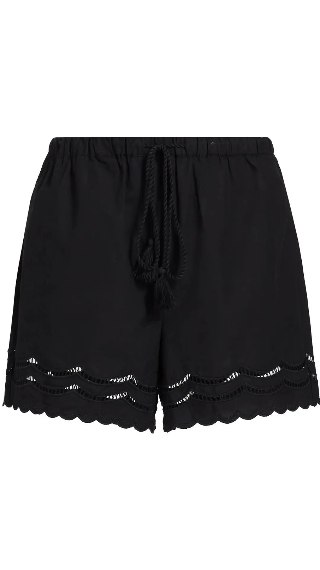 Effortless to slip on, the Armanda is a high-rise short in crisp, lightweight poplin, featuring tasseled drawcord ties, a relaxed fit, and scalloped ladder embroidery at the hem.