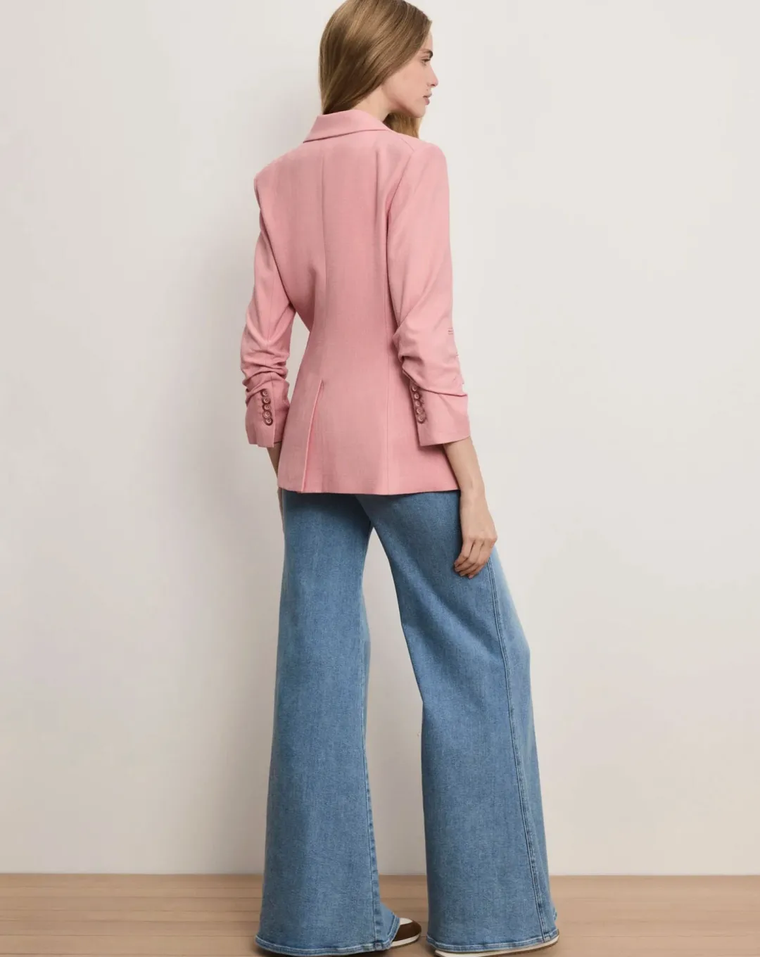 The Battista dickey jacket will quickly become your new go-to, thanks to its sleek look and impeccable fit. Expertly tailored from a premium stretch blend, this blazer features a classic single-breasted silhouette and pre-ruched sleeves that add an element of nonchalance. Finished with a slub texture and the slightest sheen, it’s a versatile go-to for work or weekends. Switch it up with a dickey for even more styling options.