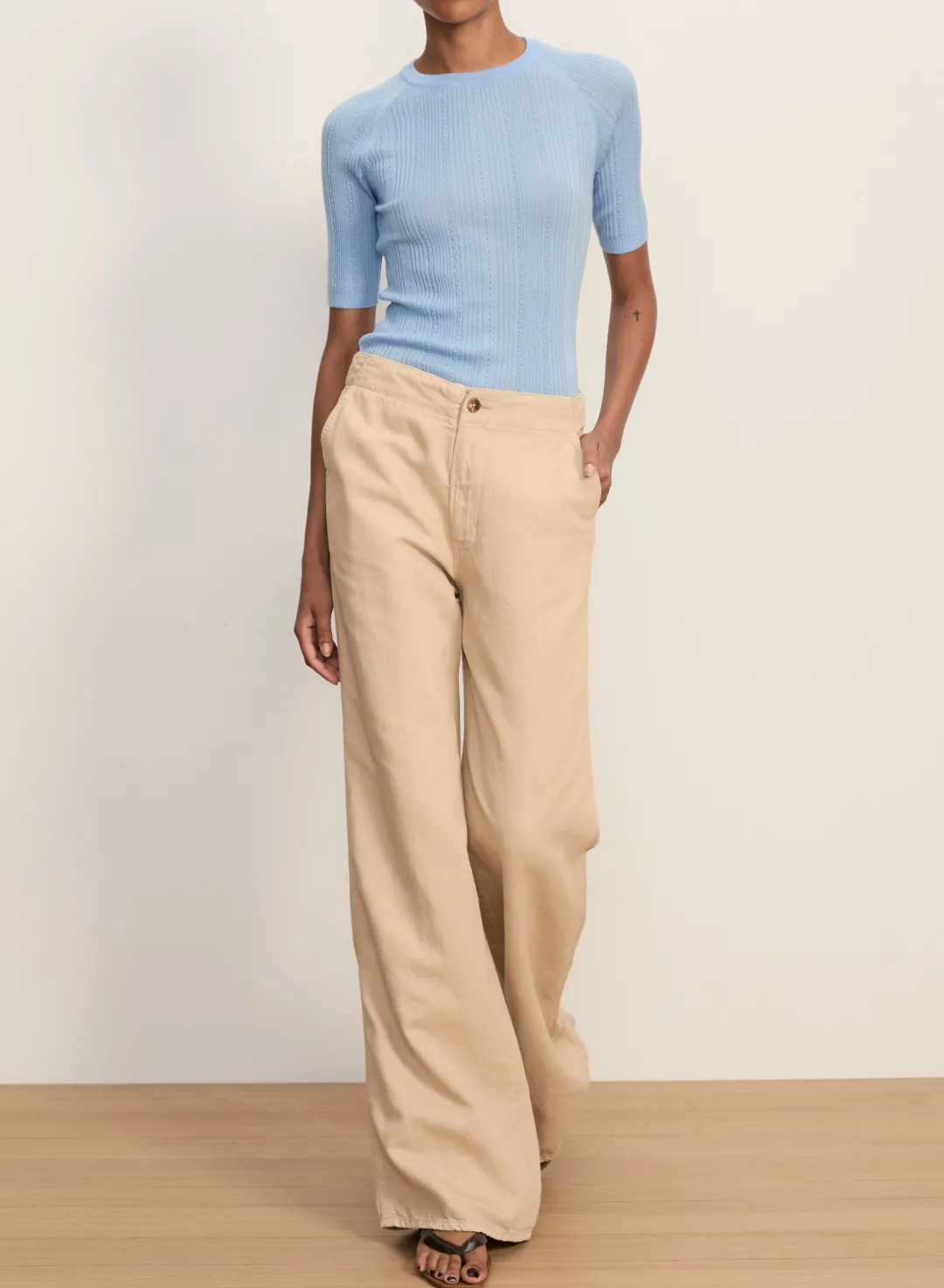 Softly clingy and endlessly wearable, this lightweight cotton top is knit with variegated ribbing for subtle texture and shape. A classic crewneck and raglan elbow-length sleeves keep the silhouette relaxed yet refined.