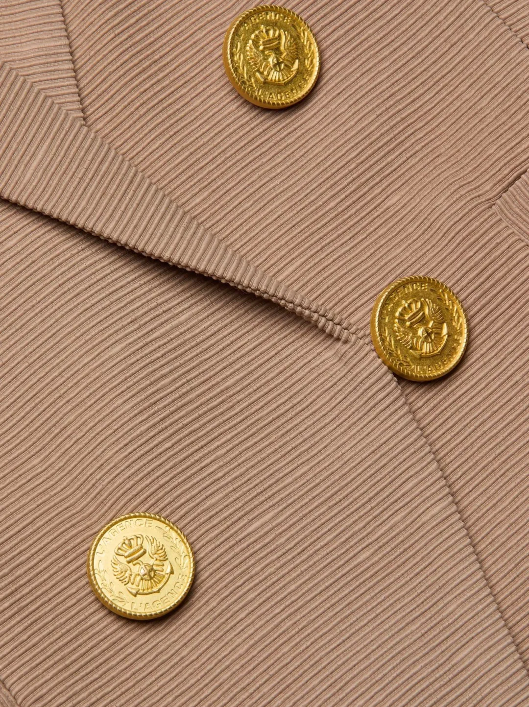 Our bestselling open-front Brooke features a flattering, tapered fit. This sharp, double-breasted blazer is now back in light brown, crafted from our lightweight ribbed ottoman fabric featuring a cool, slick hand and subtle luster. Style with jeans for downtown cool.