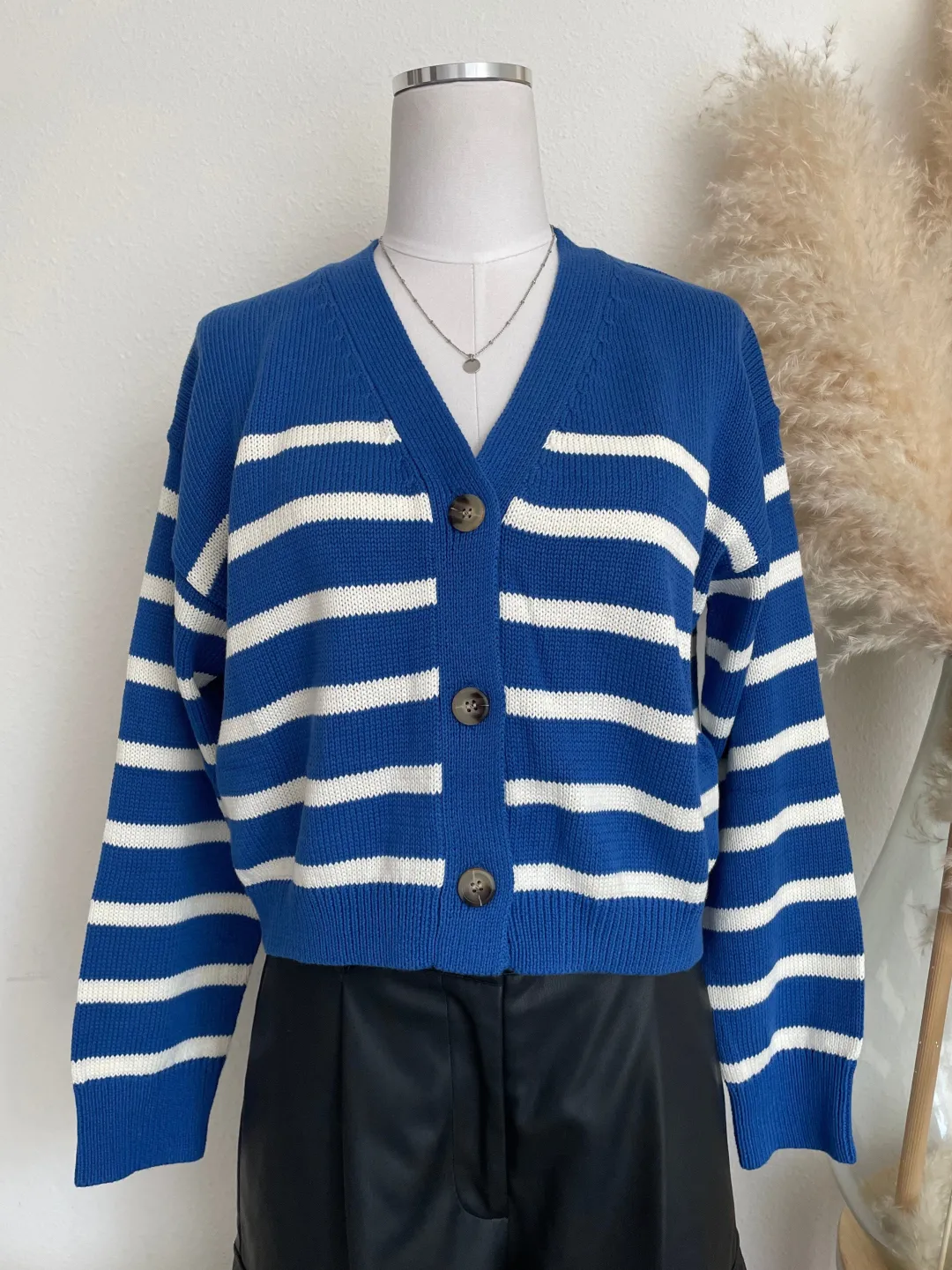 Layer up with the Carter Striped Cardigan, your new spring essential that brings bold blue stripes and undeniable charm to every outfit. This playful piece delivers instant personality with its eye-catching color blocking, perfect for adding that trending pop of color to neutral basics or mixing with your favorite prints. Lightweight and versatile, it’s the go-to cardigan for effortless style that keeps you looking fresh and fashion-forward all season long.