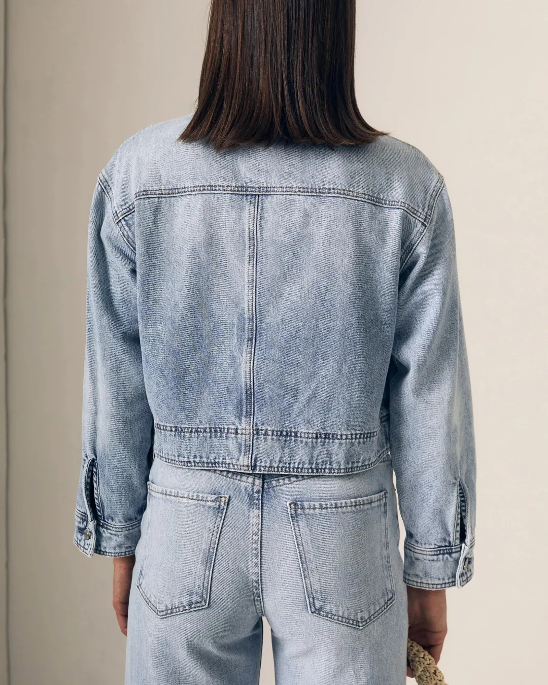 The Cora jacket is boxy, cut in a light wash denim and trimmed with special chrome finished silver buttons. Made in Los Angeles.