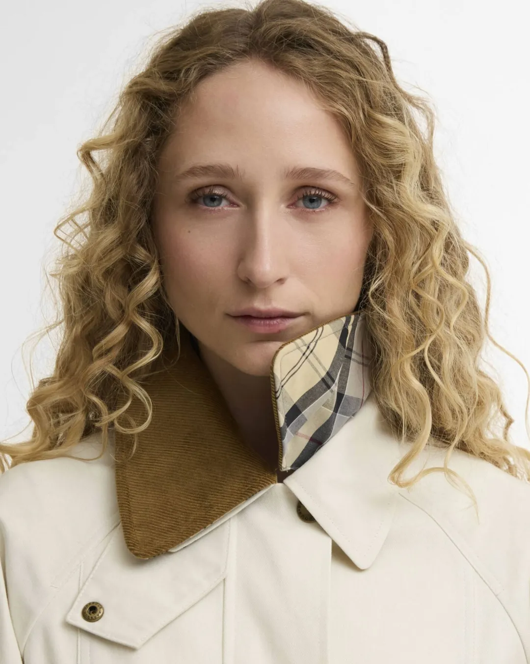 The Barbour Cropped Beadnell Casual Jacket is a regular-fit, shortened take on the classic Beadnell style. Crafted from 100% cotton, it features a detachable cord collar, tartan turn-up cuffs, and large bellow pockets as the focal point. Finished with subtle Barbour embroidery on the pocket flaps, it combines heritage detailing with a playful, cropped silhouette.