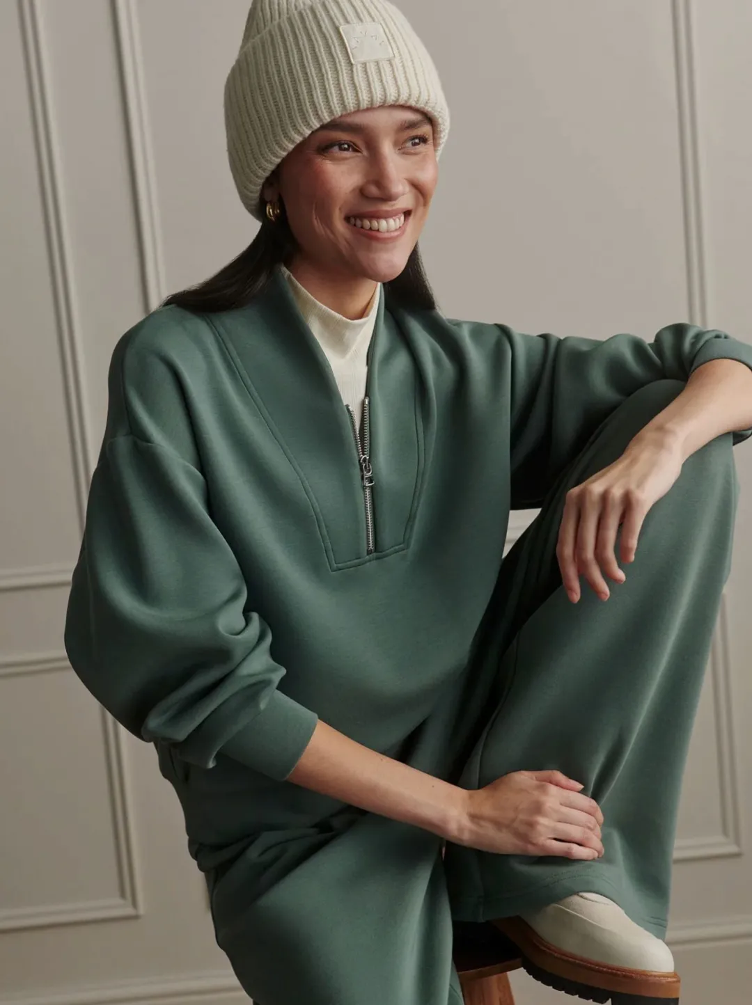 Subtly cropped for versatile styling, the Davidson sweat is an essential layering piece. Made in our lightweight DoubleSoft® fabric, this cropped style is complete with dropped shoulders and deep cuffs.