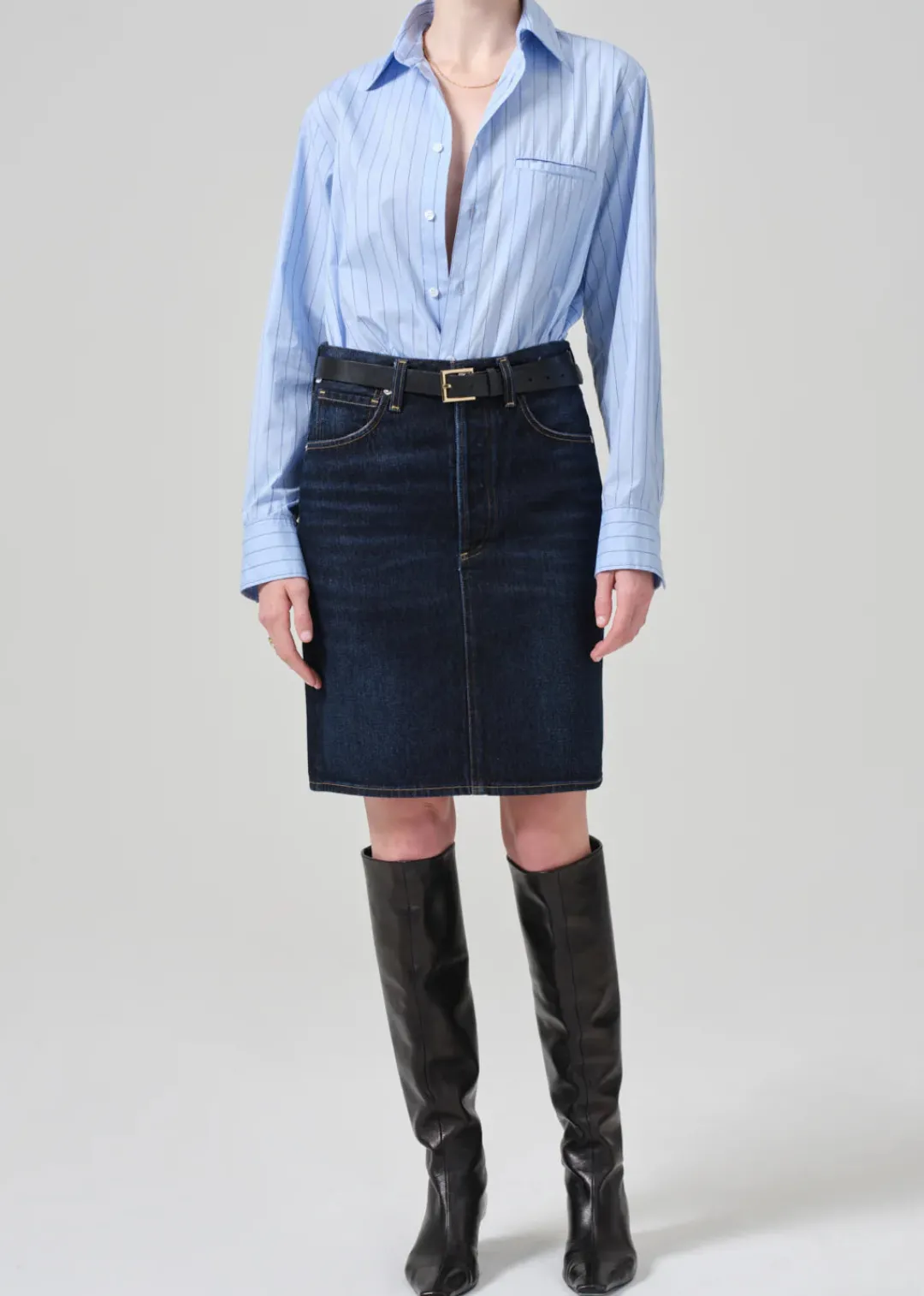 Cut to knee length, the Etta Pencil Skirt offers a slim fit and finished hem. Style with knee boots and layered shirting.