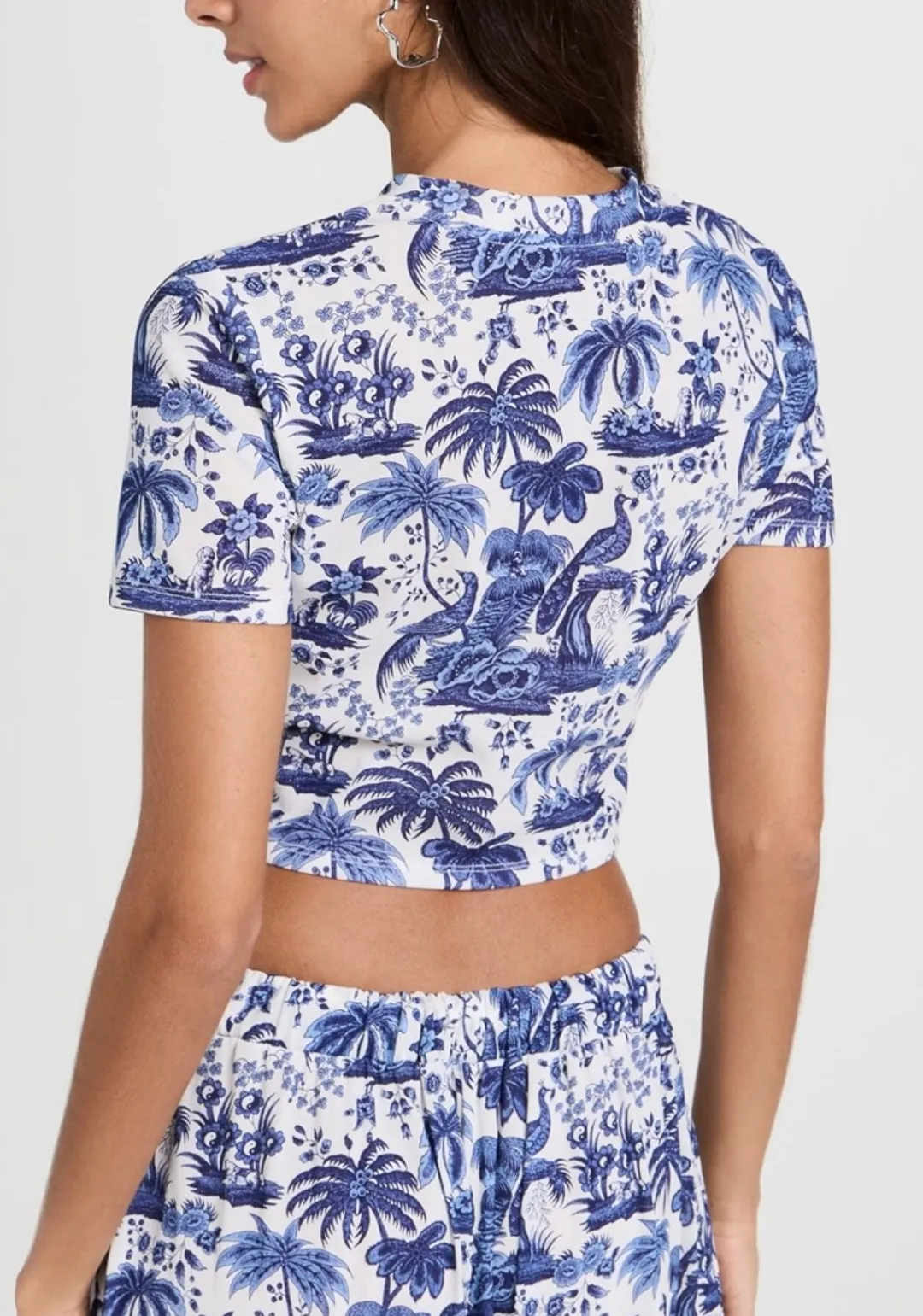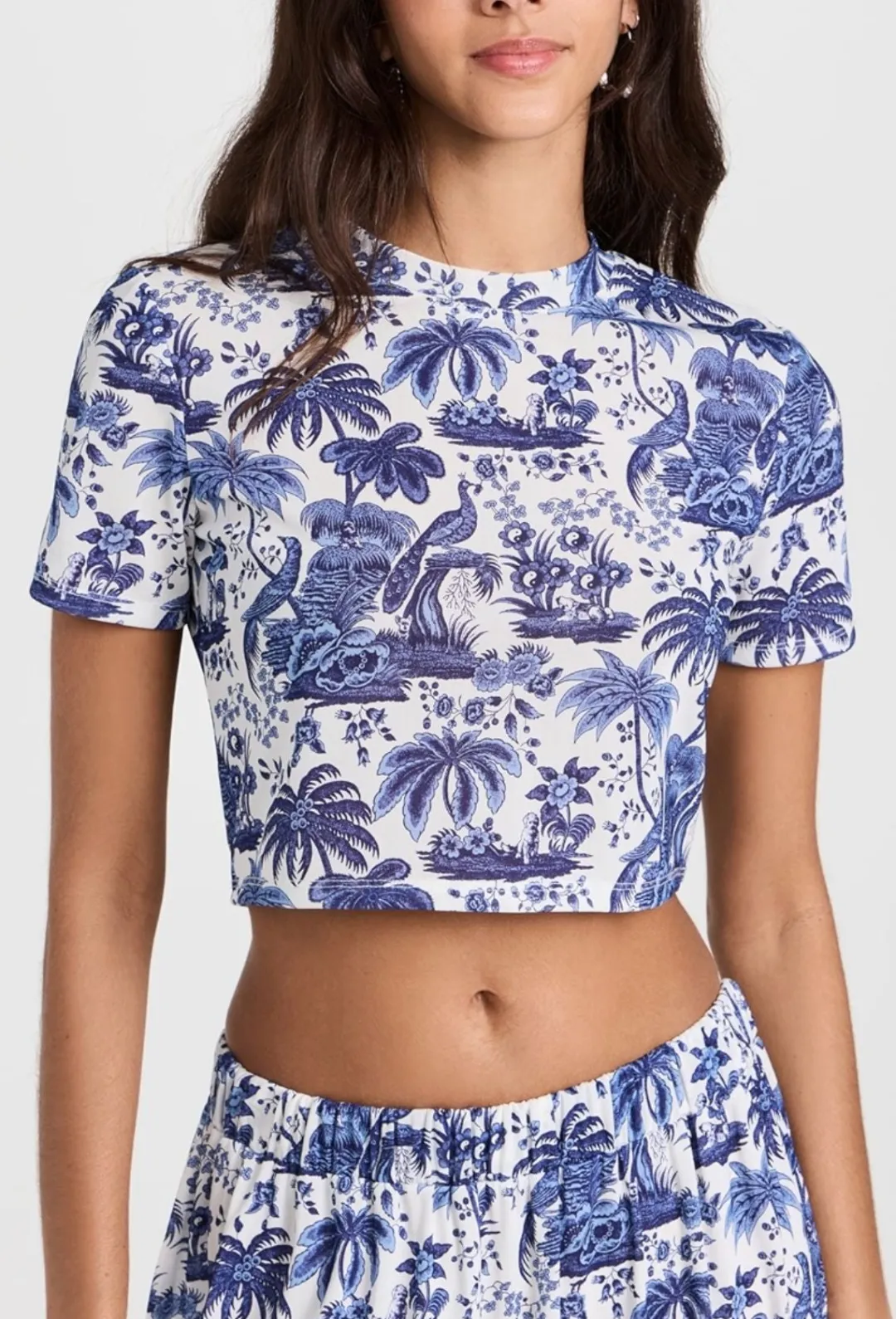 The Fernanda Top is a cropped t-shirt style swim coverup in our stretchy power mesh fabric. This style features a crewneck, short sleeves, and can be paired with your swimwear for a comfortable beach day look.