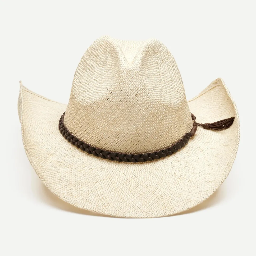 Handwoven from 100% sisal straw, its upturned brim and pinched crown give just the right amount of drama for this cowboy. Trimmed with genuine leather scallop rope trim.