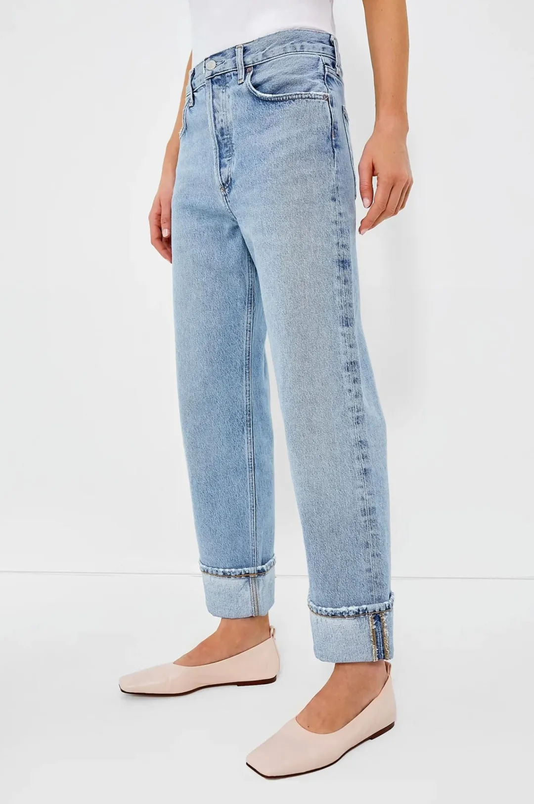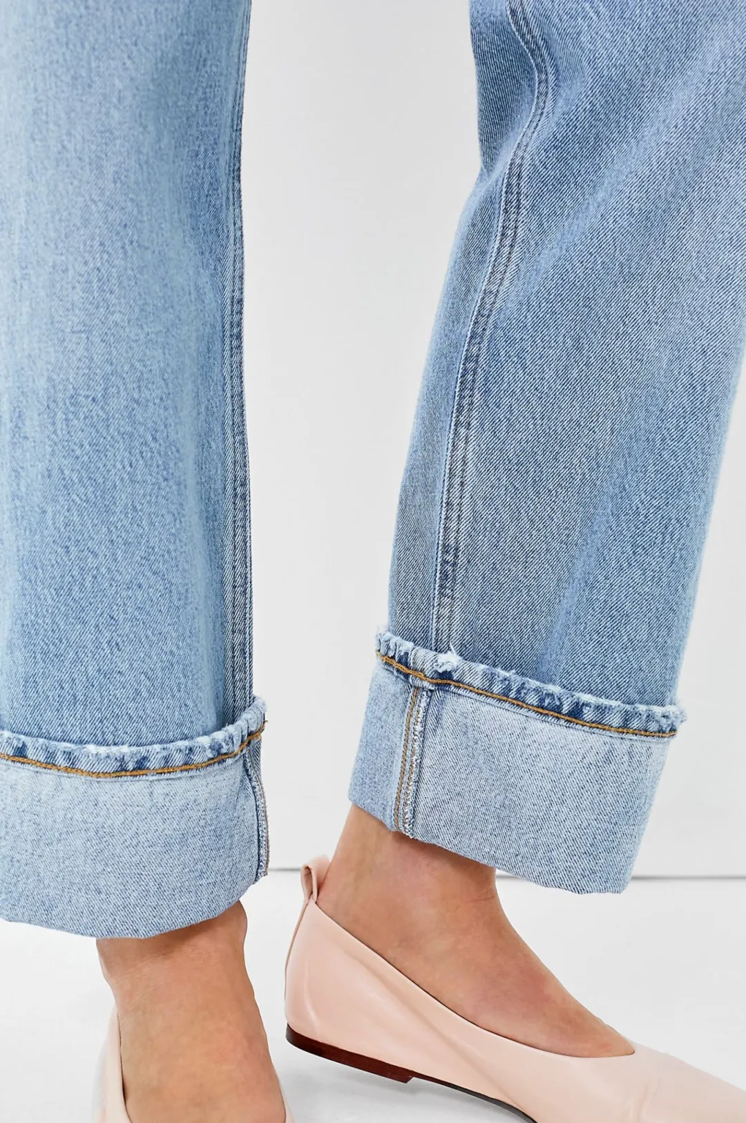 Looks Like: Light vintage indigo with a finished, untacked cuff hem
