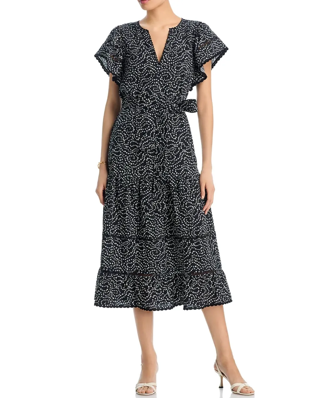 Delicate daisy chains define a supersweet dress tiered in ruffles and offered in a beloved and versatile midi length.