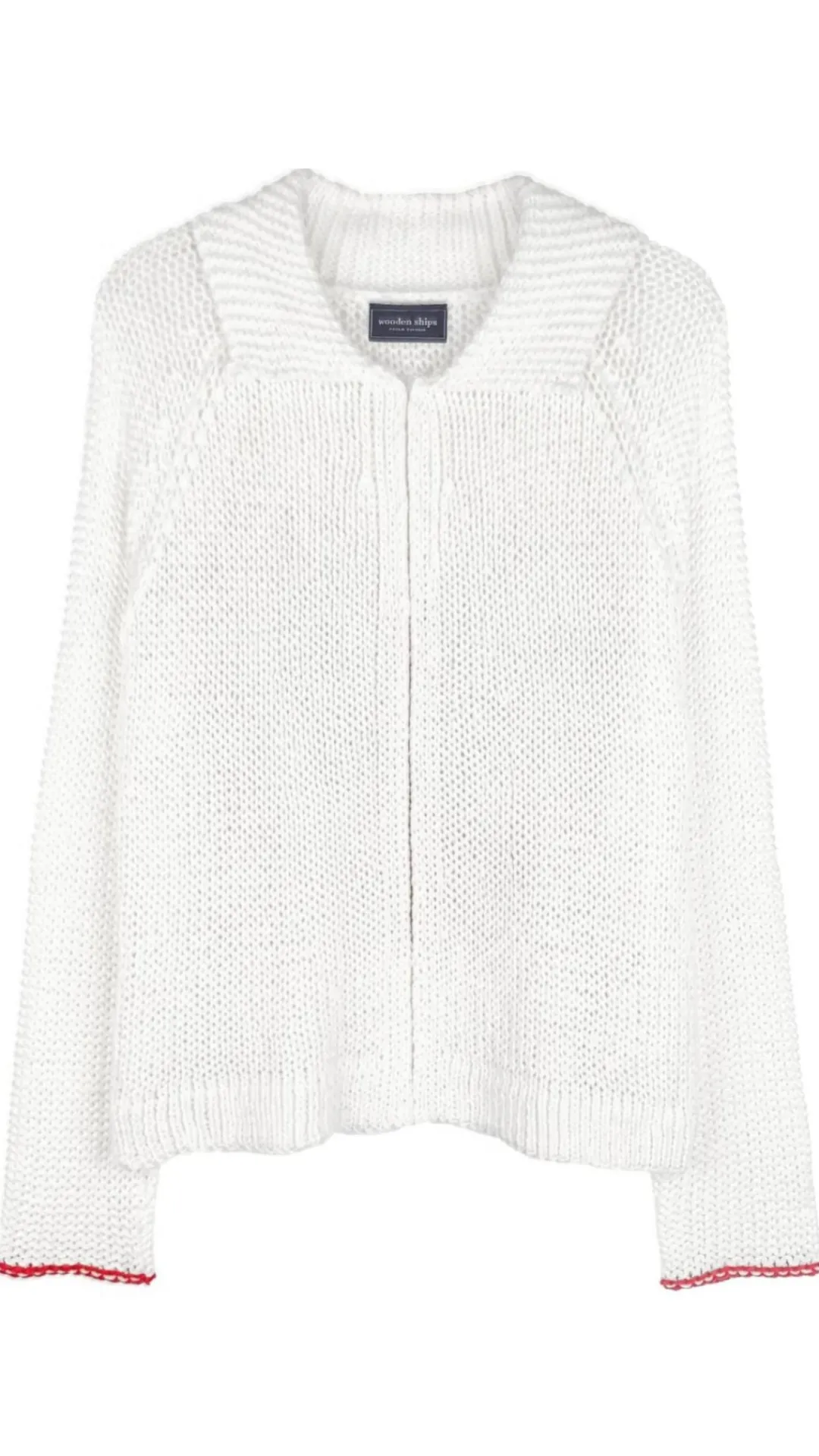 - Long sleeve knit sweater with collar and full zip front closure