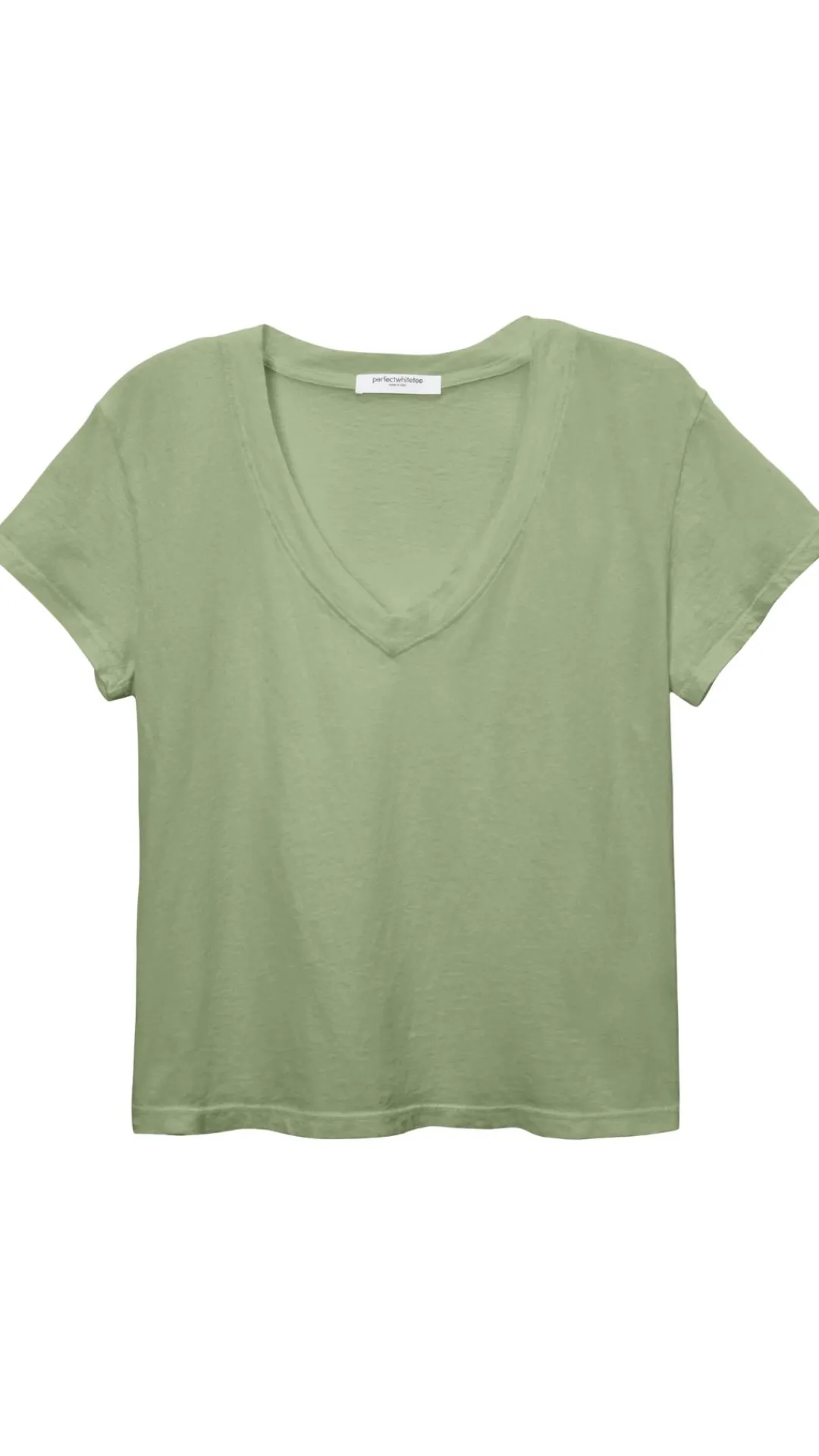We created the perfect slightly oversized v-neck. Deep enough neckline… but not TOO deep.