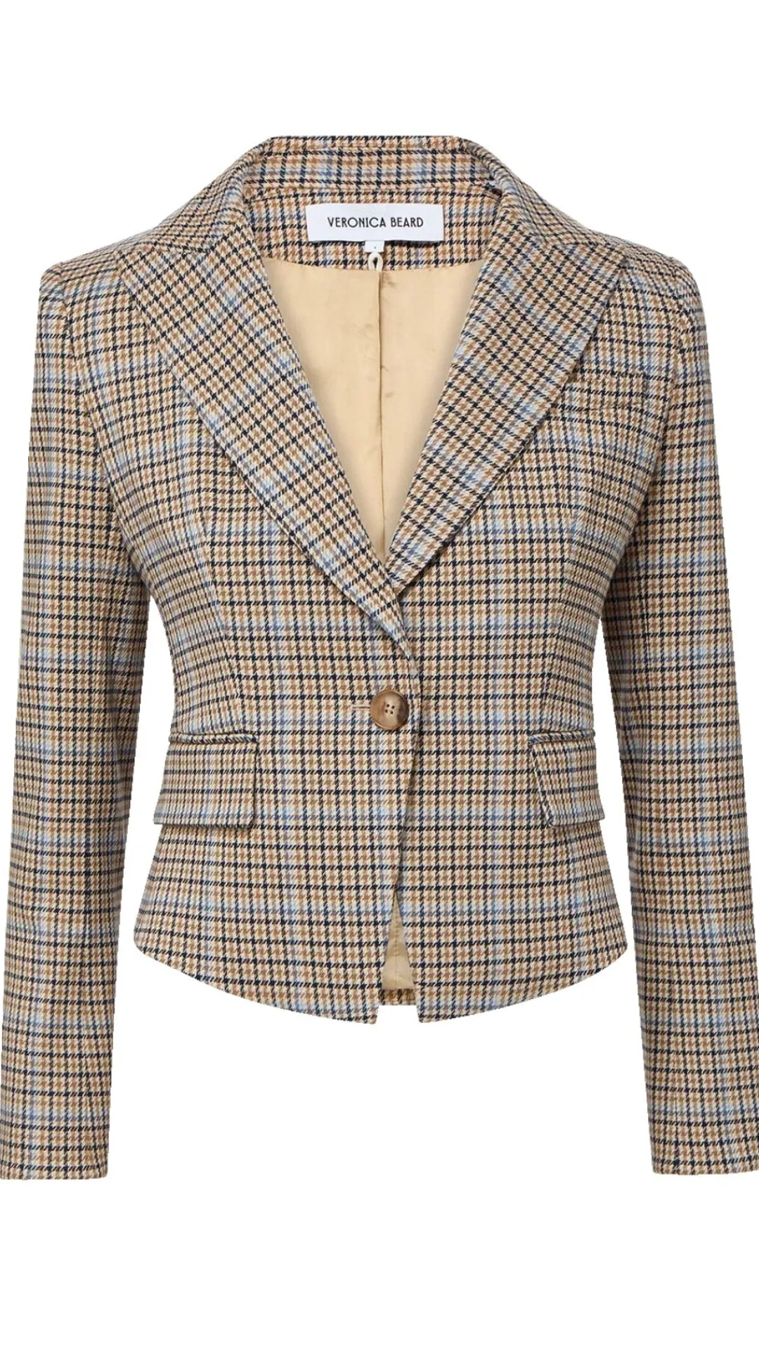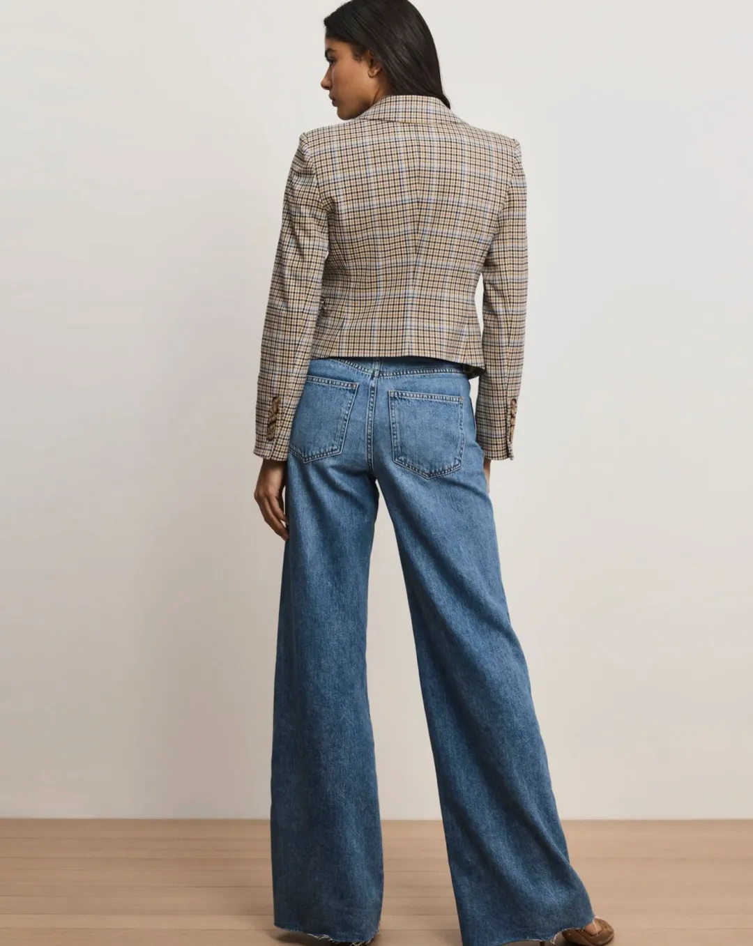 Our best-selling Hosanna dickey jacket is back—now in brown plaid. Cut in a classic, straight fit, it’s tailored from a premium stretch blend with a soft hand feel and a textured twill weave. A peak lapel and front flap pockets complete the look. A versatile go-to, this plaid blazer pairs well with everything from floral dresses to jeans.