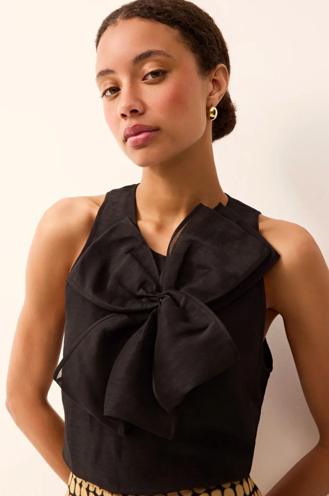 Designed for celebrating, the Indira top turns heads with its statement bow detail. Crafted from a soft silk-linen blend, this sleeveless silhouette combines modern minimalism with couture-like volume. With both polish and flair, this top is equally at home styled with tailored trousers for evening or paired with skirts.