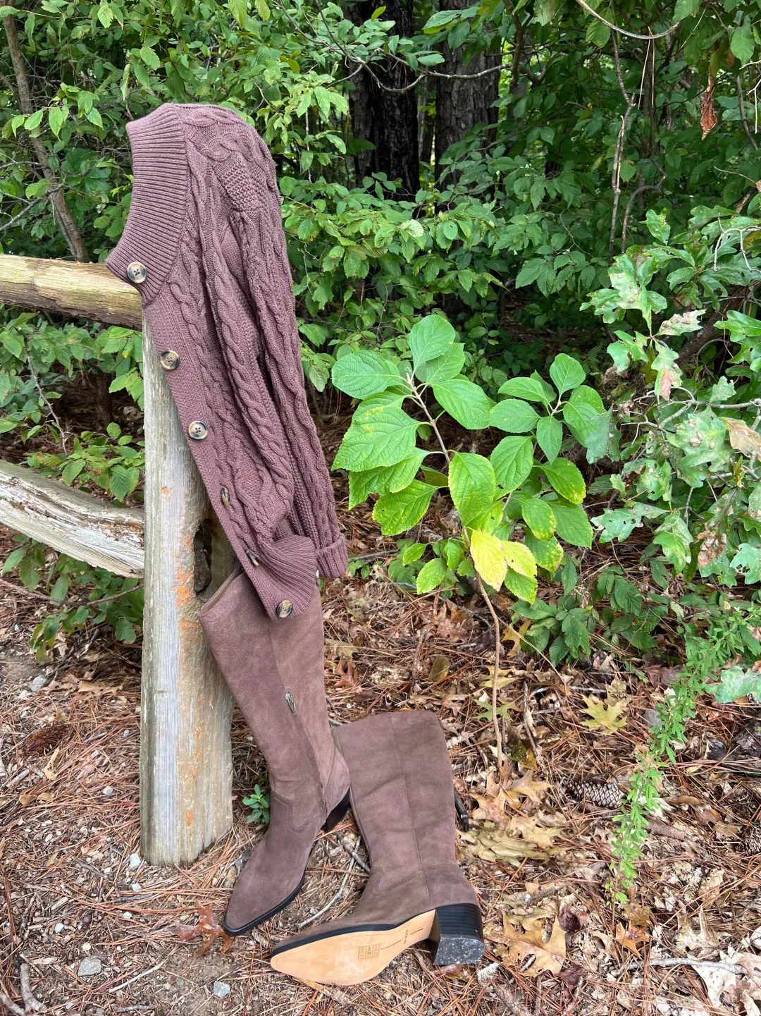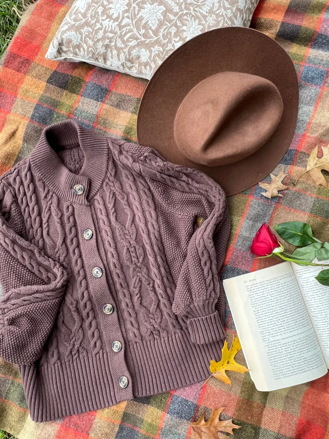 Meet the Julie Cardigan: the ultimate textured layering piece you’ll reach for all season. This cable knit stunner in rich, on-trend brown delivers both texture and warmth, without weighing you down. Ribbed hem and cuffs frame the silhouette, while tortoiseshell buttons bring an elevated finish you can dress up or down. Whether thrown over a dress for brisk morning coffee or paired with denim on weekend escapes, its packable design and timeless detail make fall and winter layering impossibly easy.