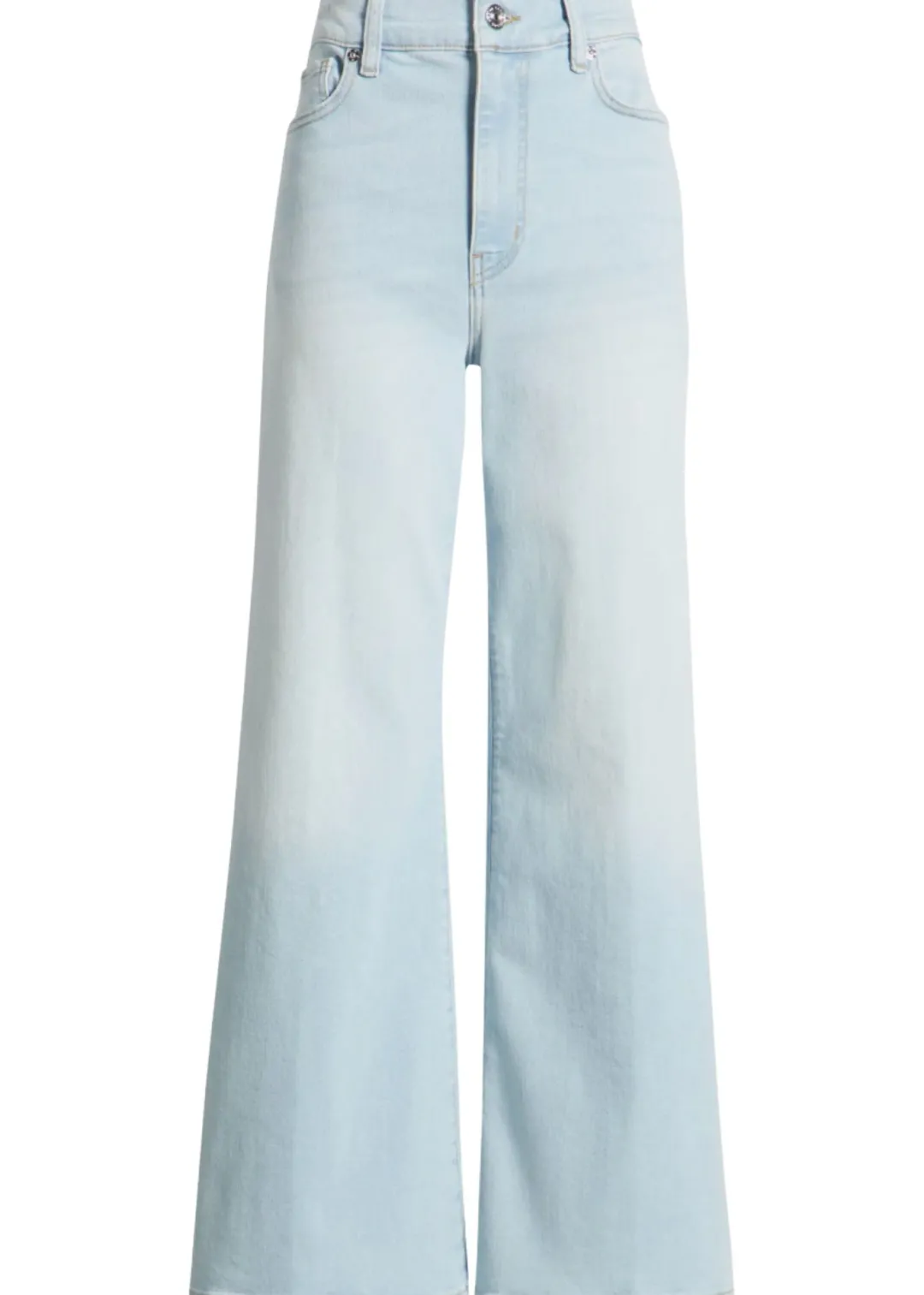 Made from sky-blue stretch denim, these ’70s-inspired palazzo jeans are remade for today with sustainably sourced fibers and a slightly shorter inseam.
