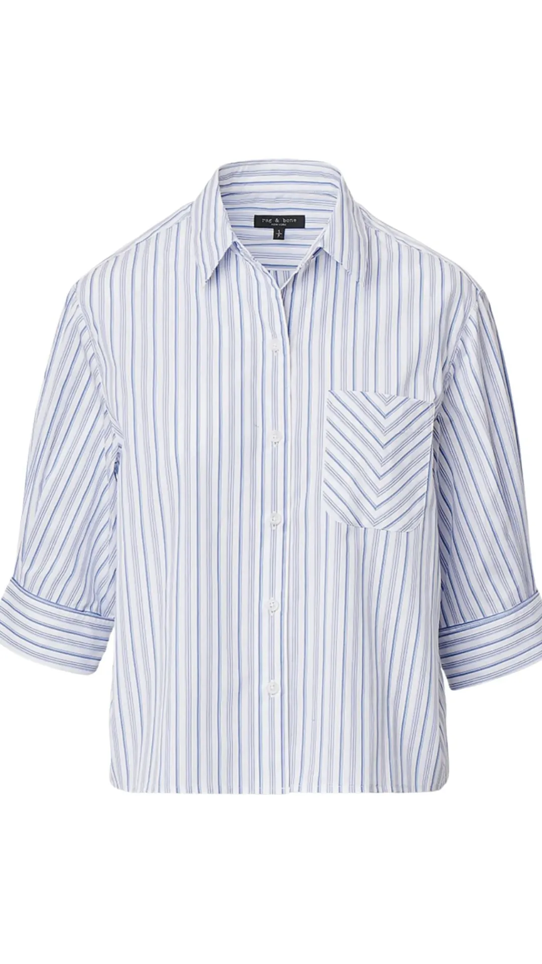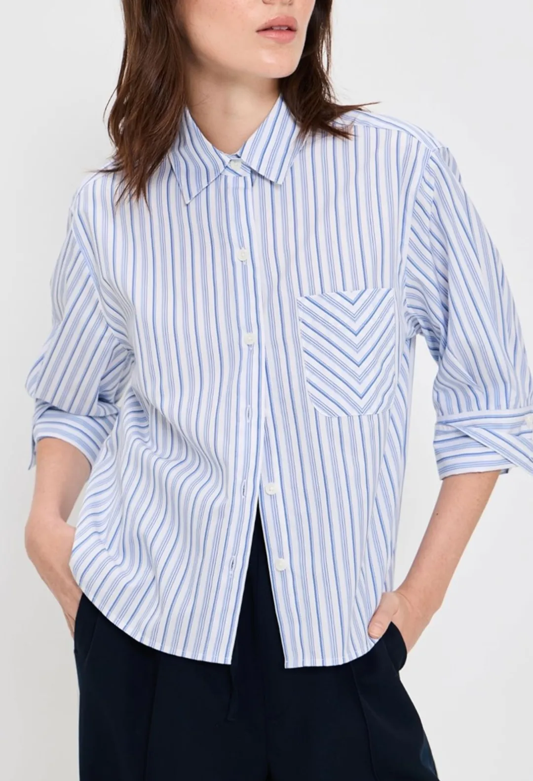Smarten up your office style with this striped cotton-poplin button-up shirt cut in a comfortably relaxed fit and framed by three-quarter sleeves.