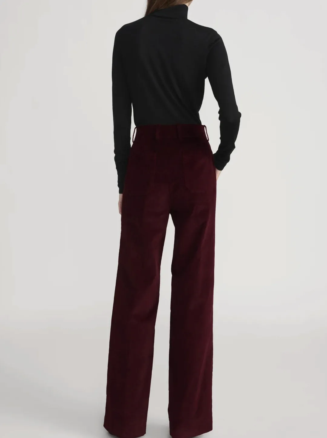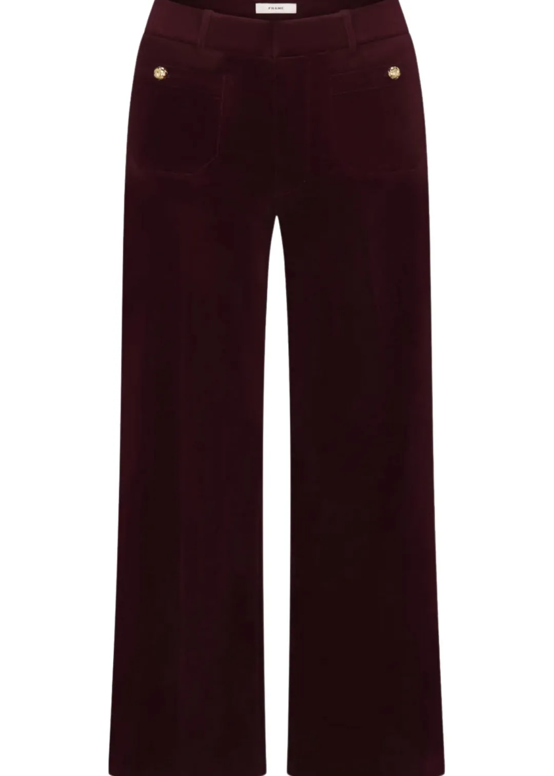 Our bestselling Slim Palazzo silhouette, now in luxe stretch velvet. This high-rise trouser features front patch pockets finished with our signature knotted gold buttons. Pair with The Velvet Smart Blazer for the ultimate seasonal uniform.
