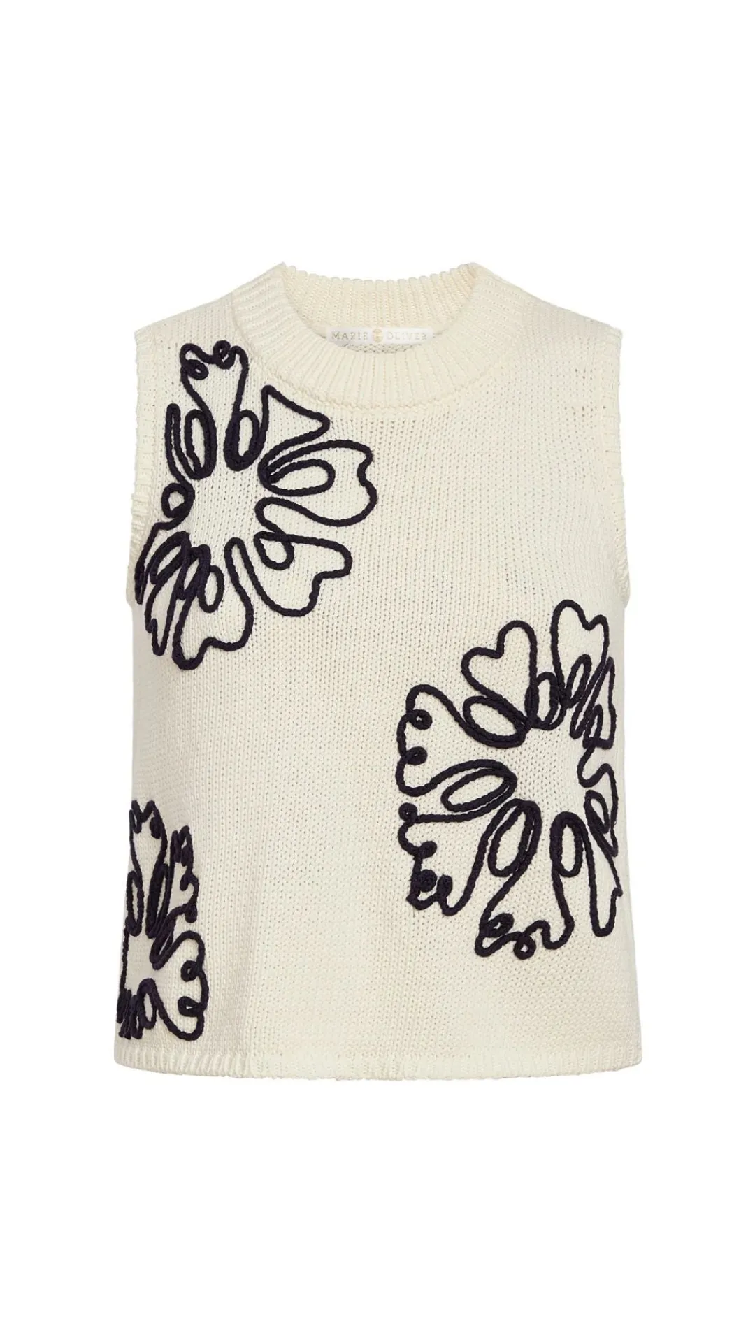 The Natasha top delivers an easy cropped fit with a classic crewneck, elevated by oversized floral embroidery in navy blue on a crisp white ground. Paired here with the matching Sasha skirt in Blossom, it’s a polished, packable choice for spring getaways.