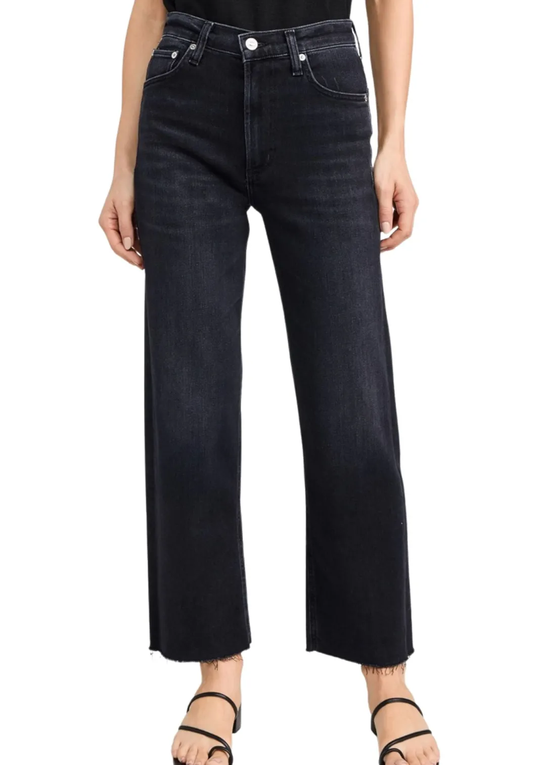 A dark wash with minimal fading ensures a polished, casual-chic appearance in these slim-cut, raw-cropped jeans.