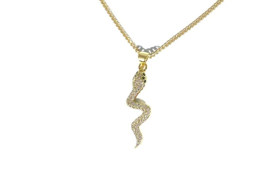 -Gold-Filled White Pavé Snake Pendant