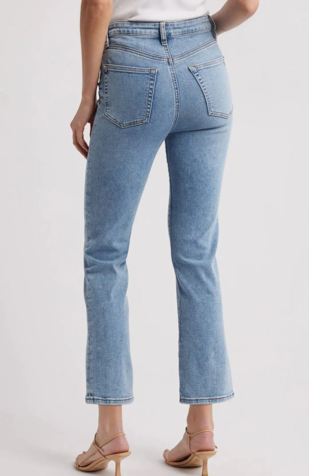 A slimmed-down version of classic straight-leg jeans, this ankle-length pair is cut from superstretchy denim made partially from recycled fibers.