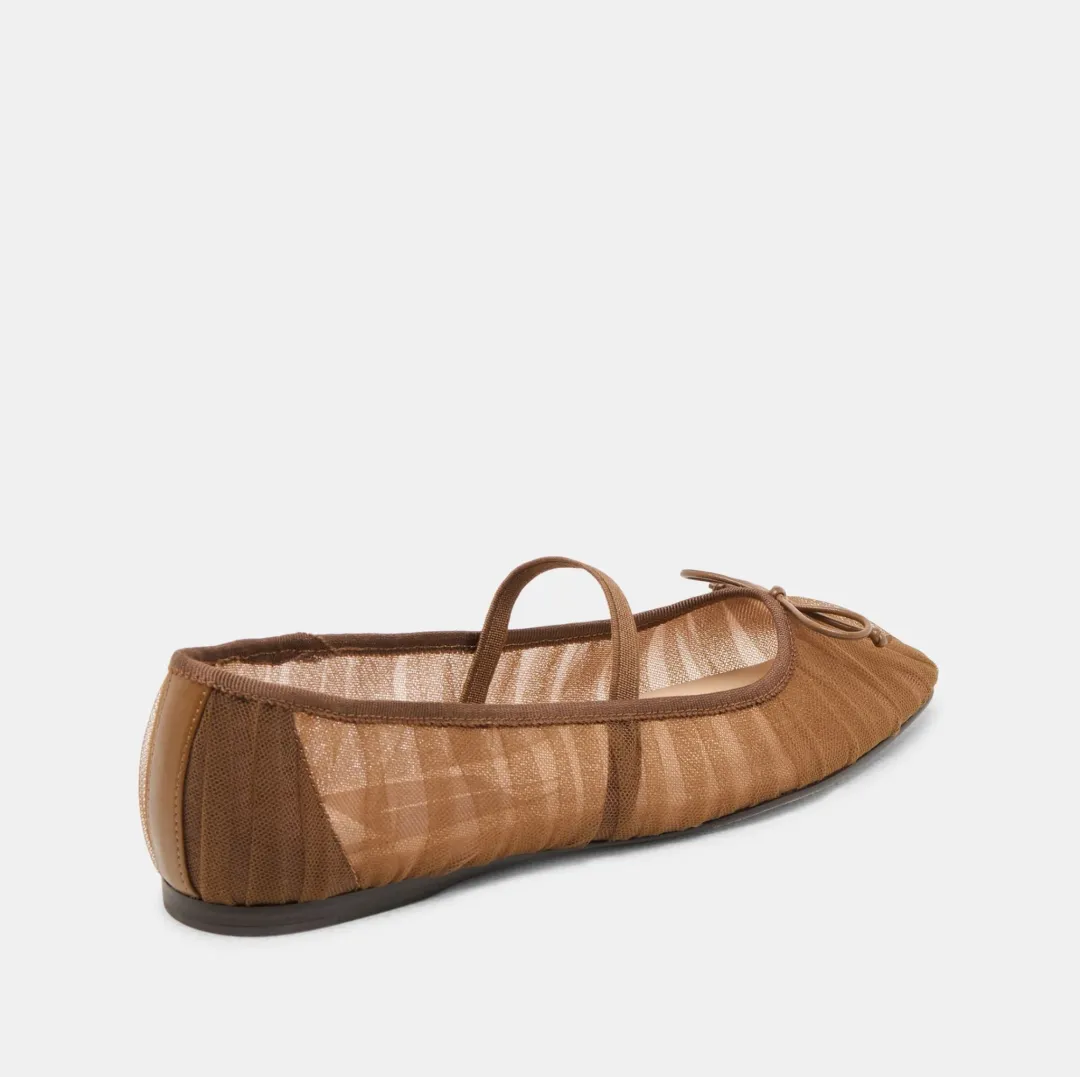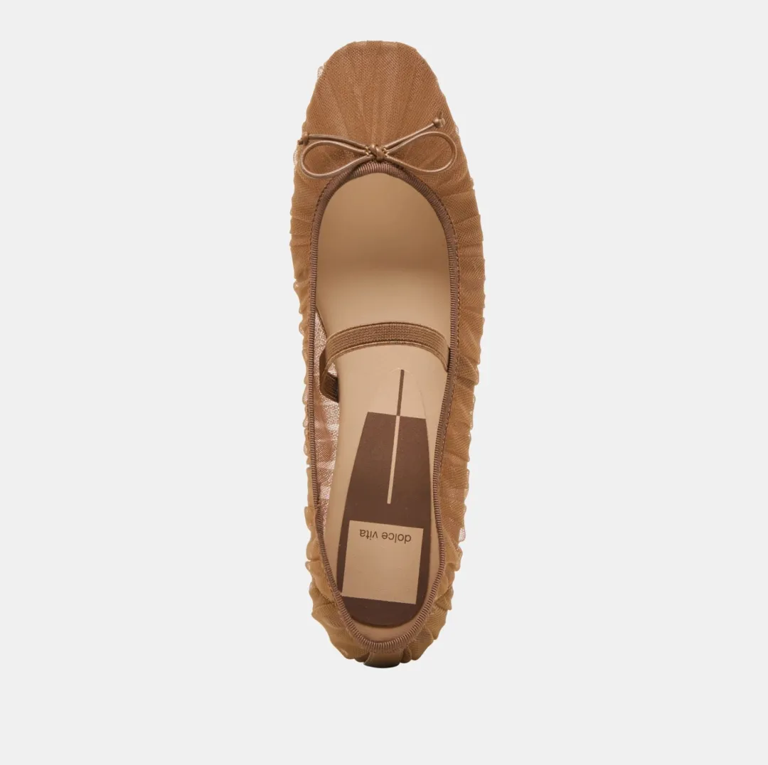 A gauzy overlay and mary jane strap add everyday charm to this square-toe ballet flat.