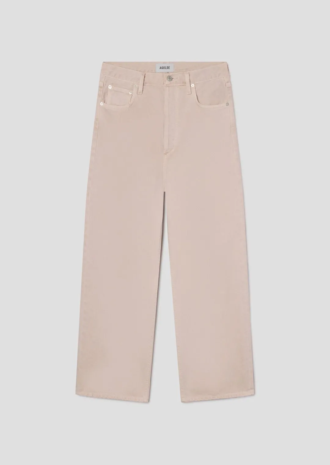 A high-rise wide-leg silhouette, the Ren Jean is designed with a flattering high waist, a relaxed fit through the hips, and a clean, elongated leg shape. Rendered in a light pastel pink wash, it brings a fresh, softly saturated twist to a timeless classic. Crafted from rigid non stretch regenerative cotton denim with a soft hand feel, it offers all day wearability while maintaining its sculpted structure.