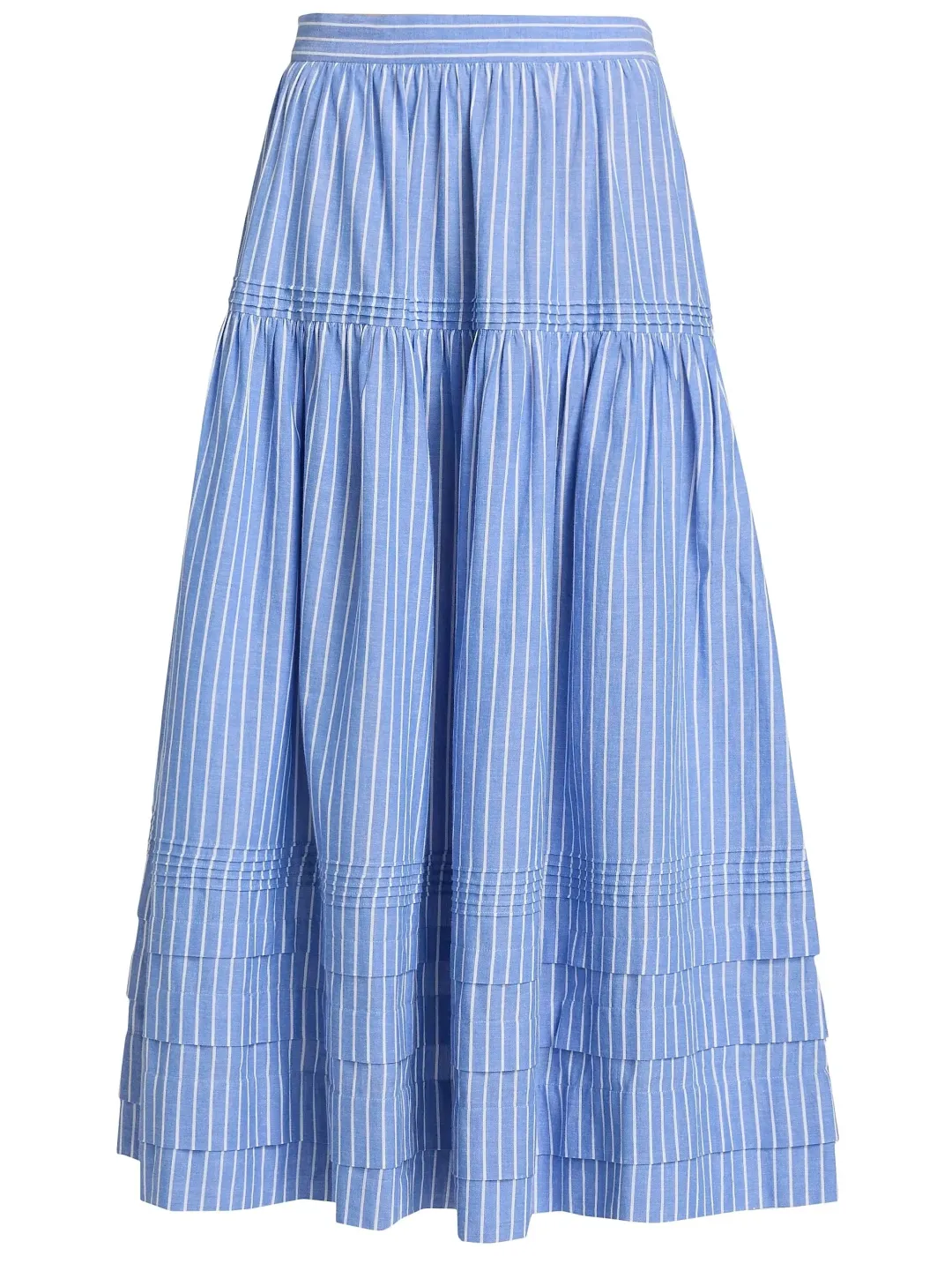 Crafted of cotton, this tiered Sebastiane midi-skirt from DÔEN features a vertical stripe.