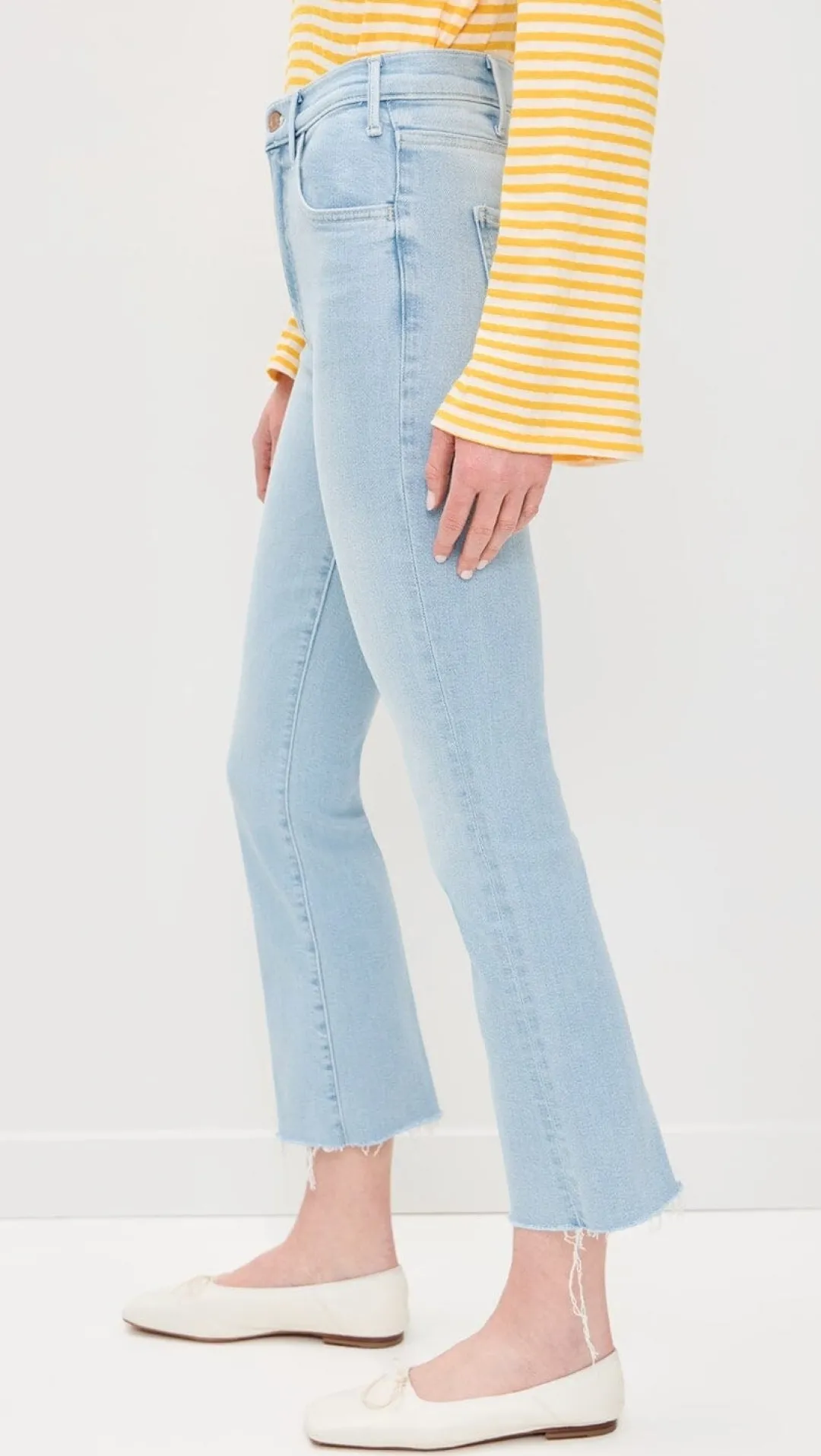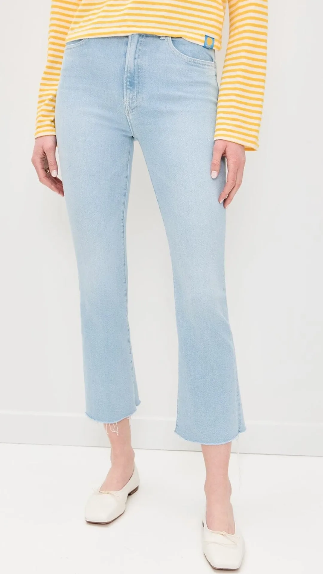 Make your move. This bestselling high-rise flare has an ankle-length inseam and a raw hem. Made from stretch denim, Ball’s In Your Court is light blue with fading throughout.
