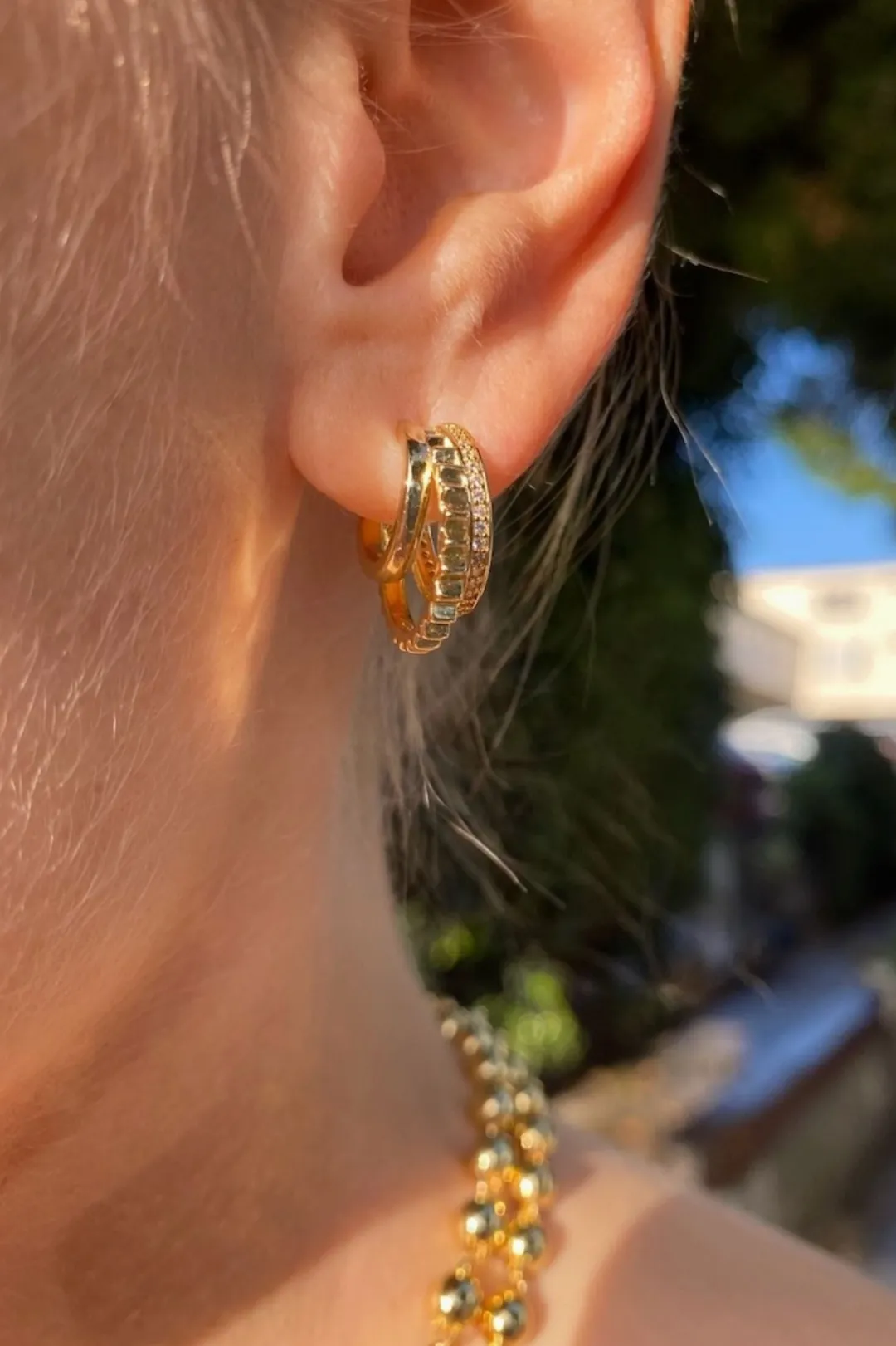 25 mm triple huggie in 14K gold vermeil with cubic zirconia