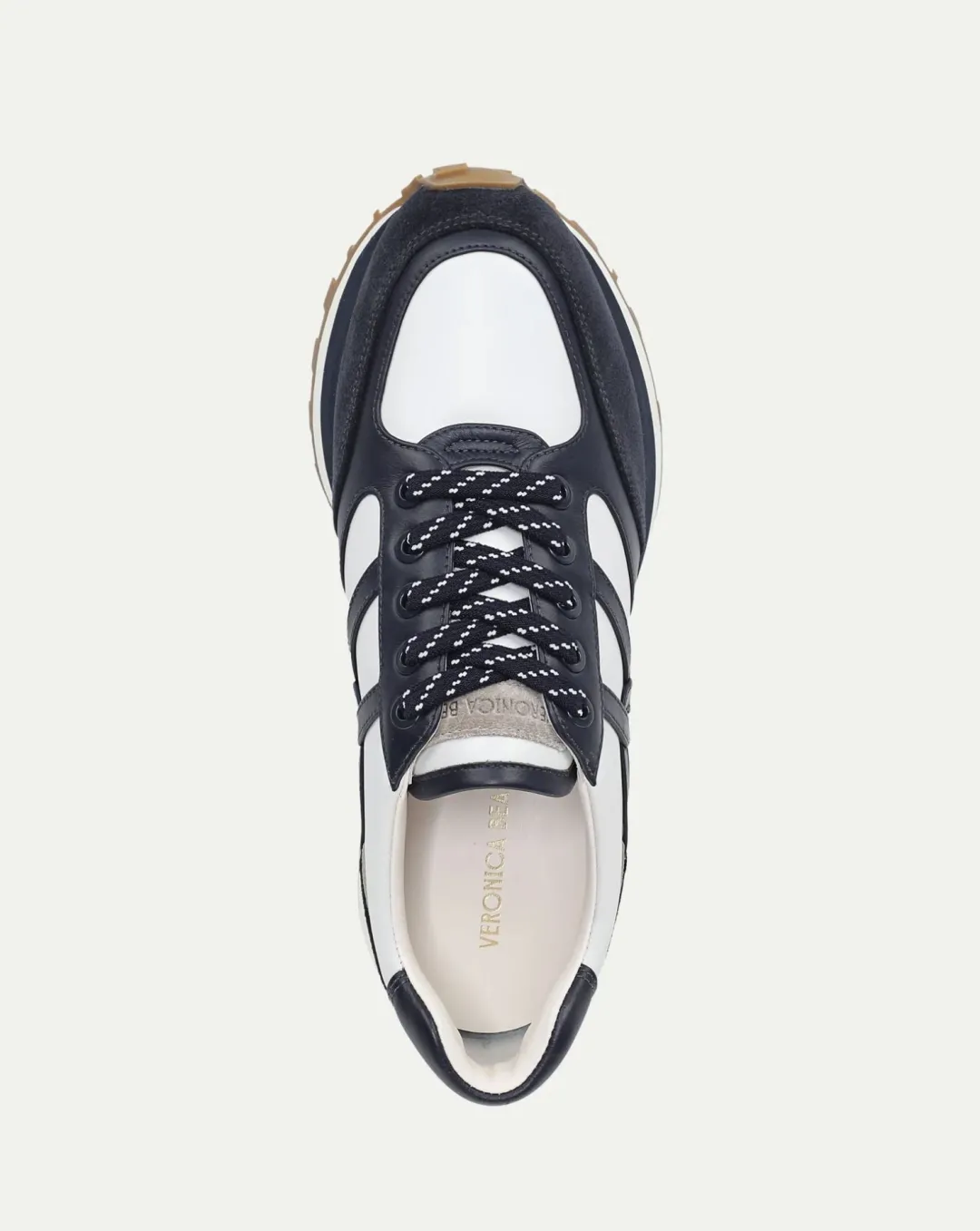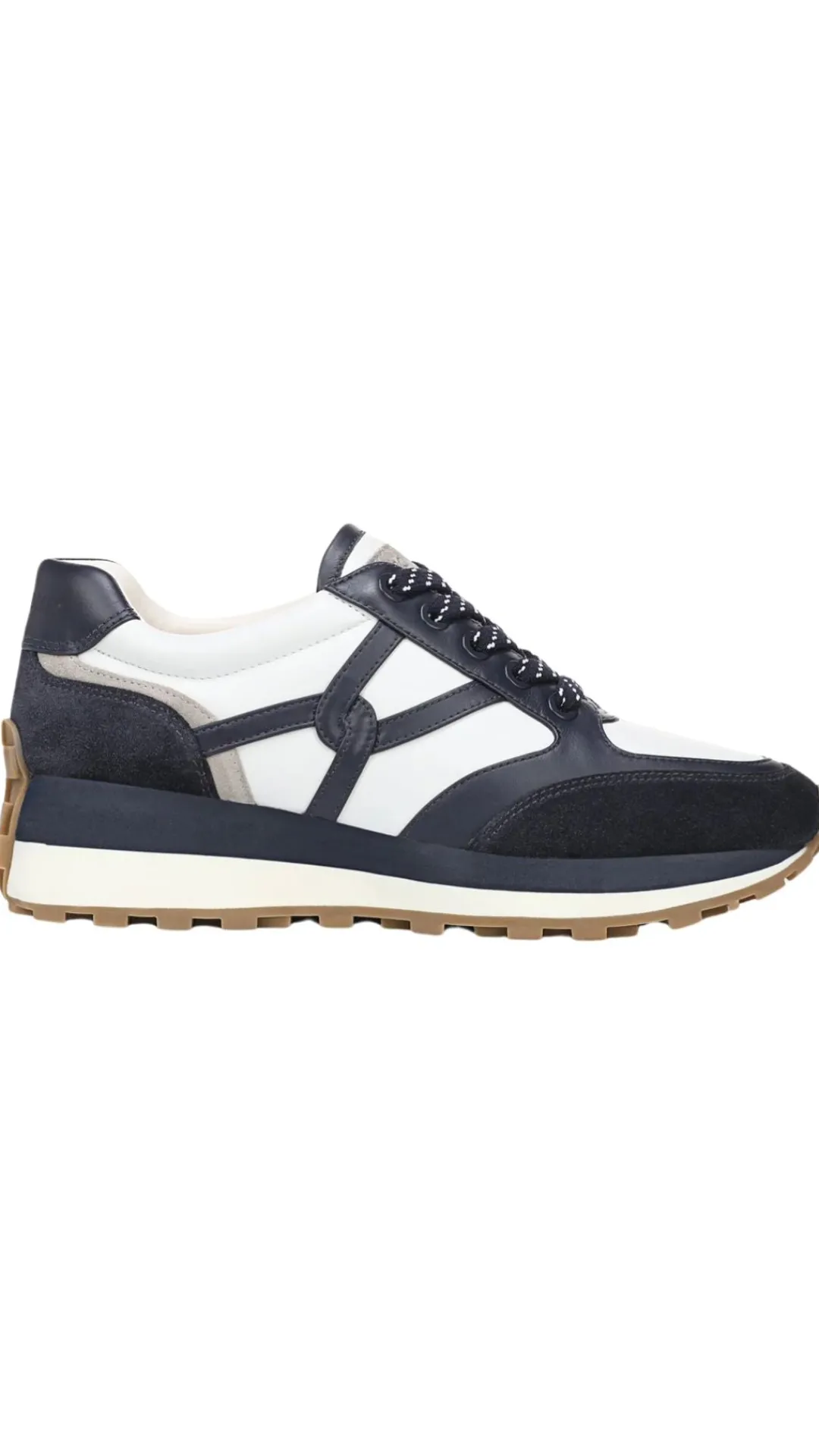 The best-selling Valentina sneaker combines flattering lines and comfort—with a two-inch lift. Made from suede and leather in graphic navy blue and white, the style features a padded collar and a cushioned midsole for all-day comfort while the rubber outsole provides traction and grip. Patterned laces and an interlocking-V design—a nod to our logo—complete the look. Sporty and chic, it’s made for both getaways and every day.