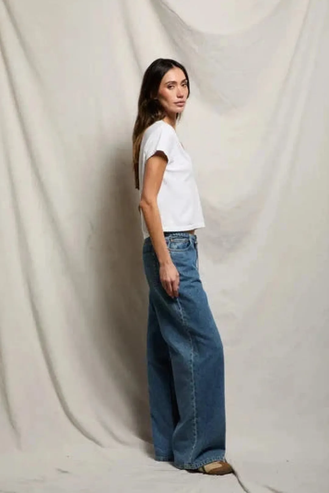 why we love it: she’s your laid-back, do-it-all tee. cool enough for the street, soft enough for the sofa. and yes, that v-neck hits just right.