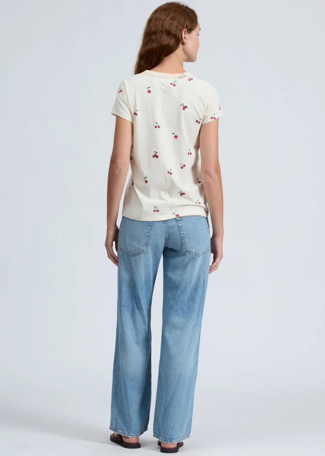 Cherries all over. Crafted entirely from long-staple Peruvian cotton renowned for its durability, softness, and nuanced visual texture. Cut for a classic fit and featuring red cherries printed throughout, it’s sure to be a favorite for spring.