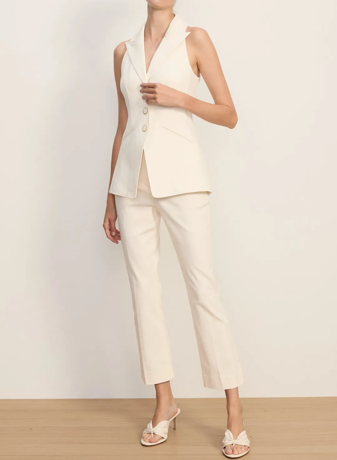 Expertly tailored from stretch cotton twill, the Althea pant features a slim fit, a cropped leg, and a slightly flared hem. A high waist elongates the figure, while the clean, flat front ensures a sleek, streamlined silhouette. Back welt pockets complete the look. Endlessly versatile, this pairs with anything and everything—work, weekend, and beyond.