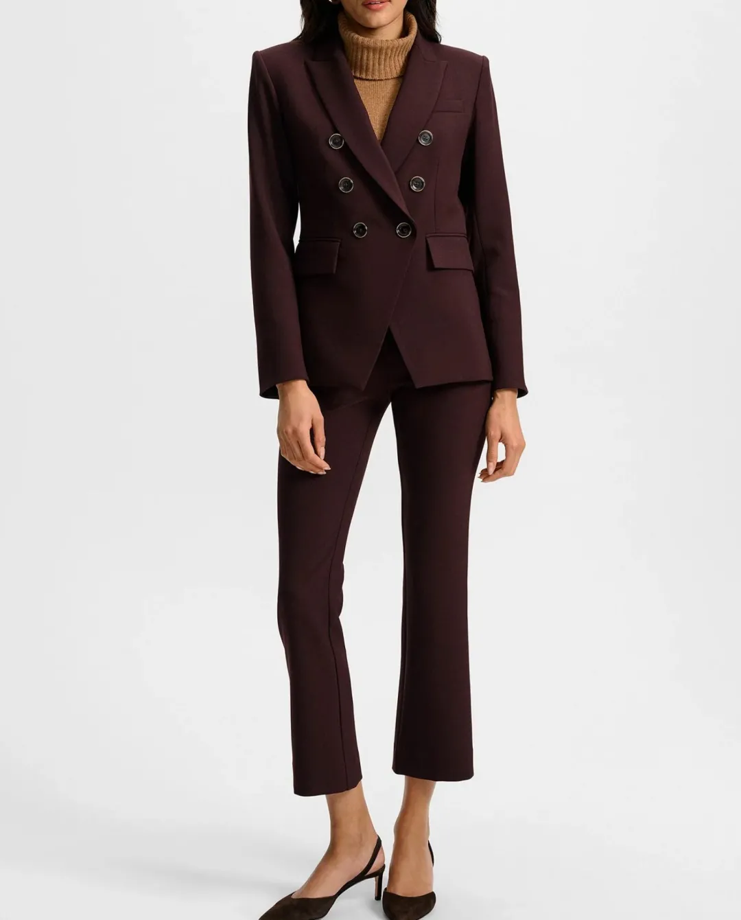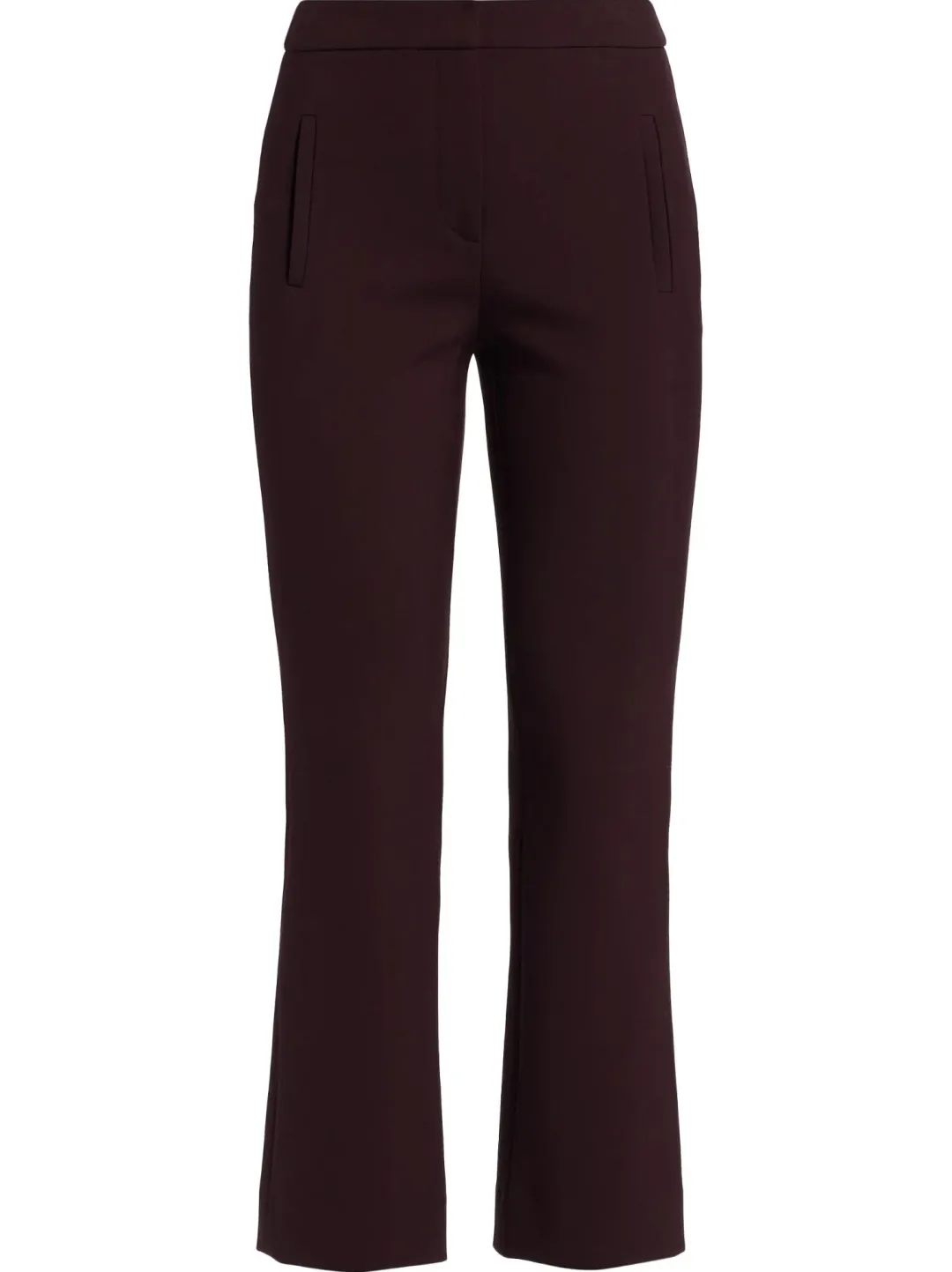 The Arte pant is a cropped, high-waisted pant with a slim fit and slightly flared hem, finished with flat welt pockets and a hidden hook-and-bar closure for a sleek, tailored look. Crafted from a soft and breathable stretch-cotton blend, it’s the perfect pant for summer—pair it with the coordinating Avalina vest for a sleek tailored set.