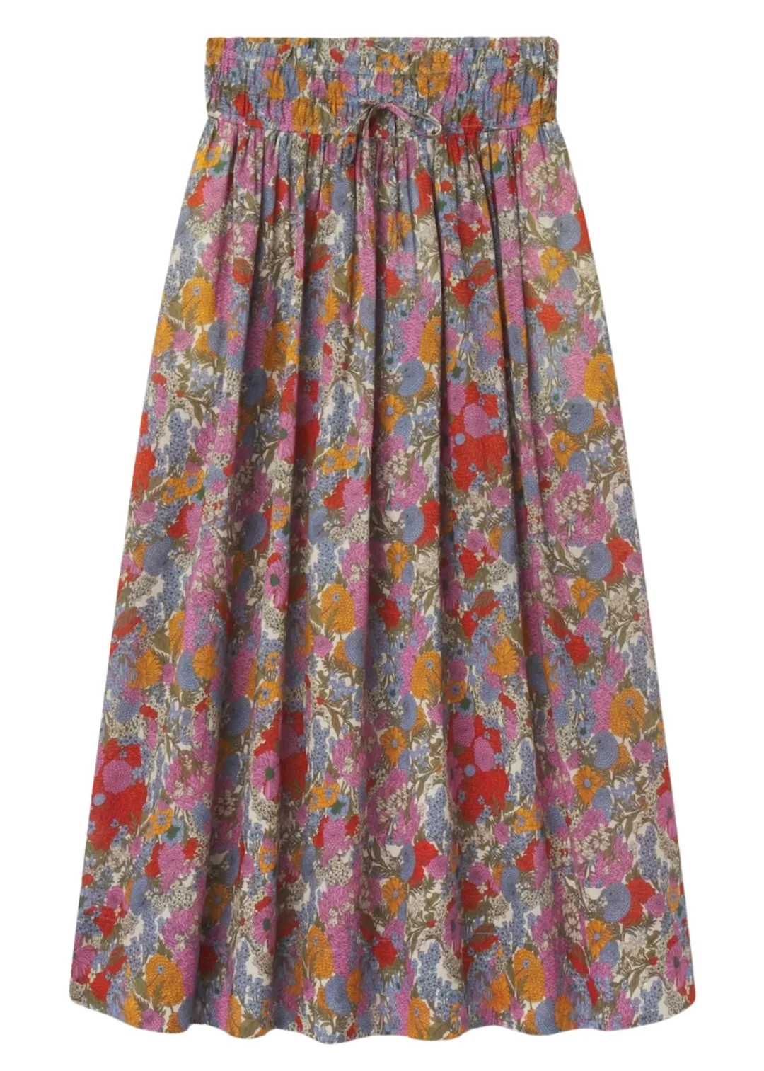 The Bianca Skirt is a billowy, midi-length style with a smocked elastic waistband and seamed gathers at the hips that release into a sweeping hemline. Finished with an adjustable self-fabric drawstring for a flexible fit and our signature side seam pockets. Shown here in pink Delicate Tilia and made from our cotton voile.