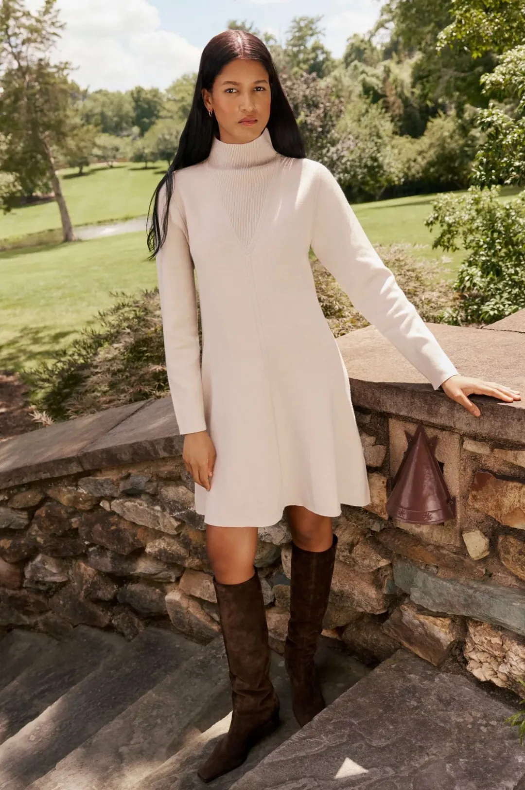 Marie Oliver took the everyday wearability of our staple Claudie popover and reimagined it in dress form. With a relaxed swing fit, our new mock-neck Brantley dress comes in Antarctica. Pair it with your favorite boots and the effortless, slip-on silhouette will take you almost anywhere you want to go this season.