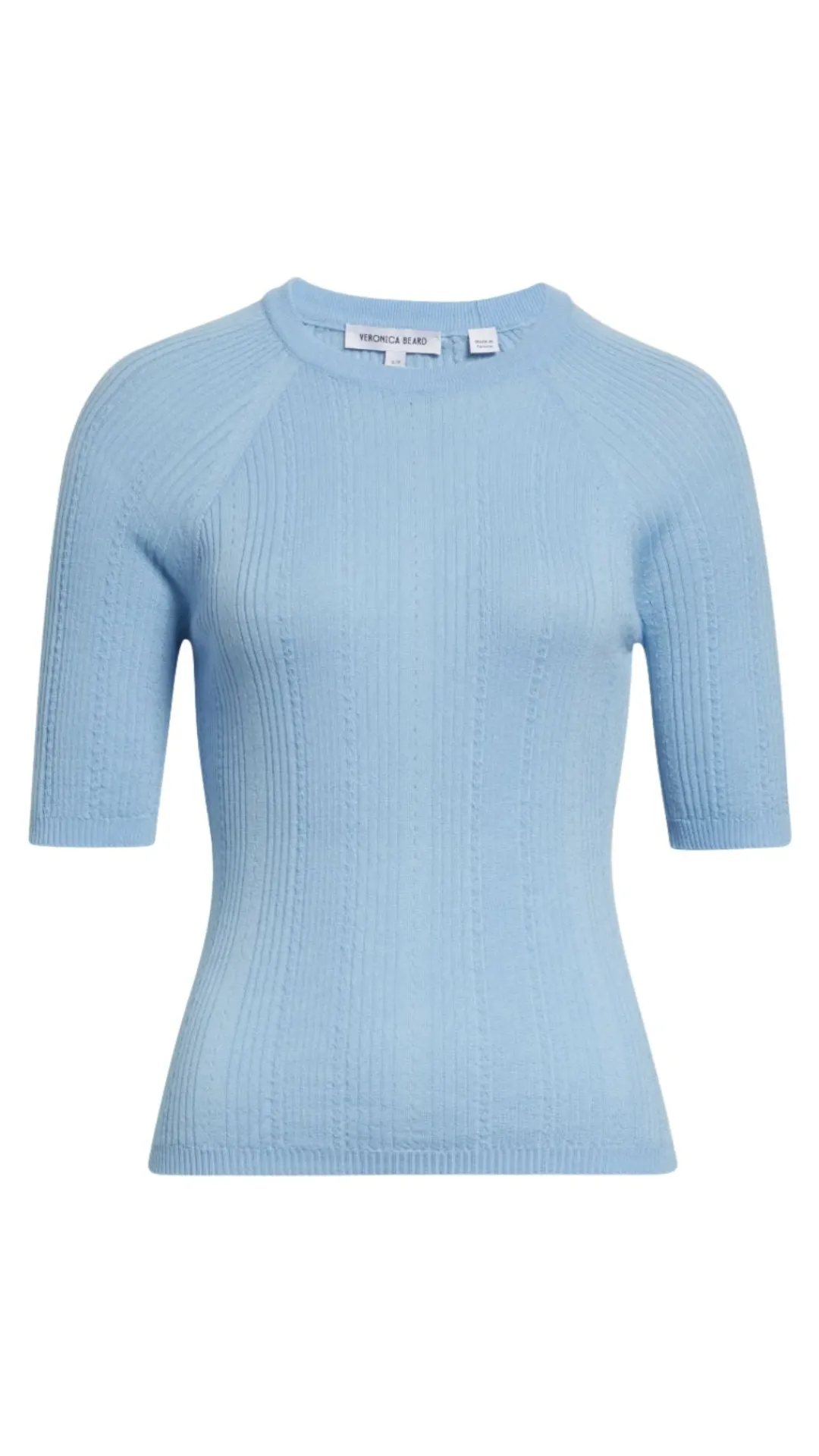 Softly clingy and endlessly wearable, this lightweight cotton top is knit with variegated ribbing for subtle texture and shape. A classic crewneck and raglan elbow-length sleeves keep the silhouette relaxed yet refined.