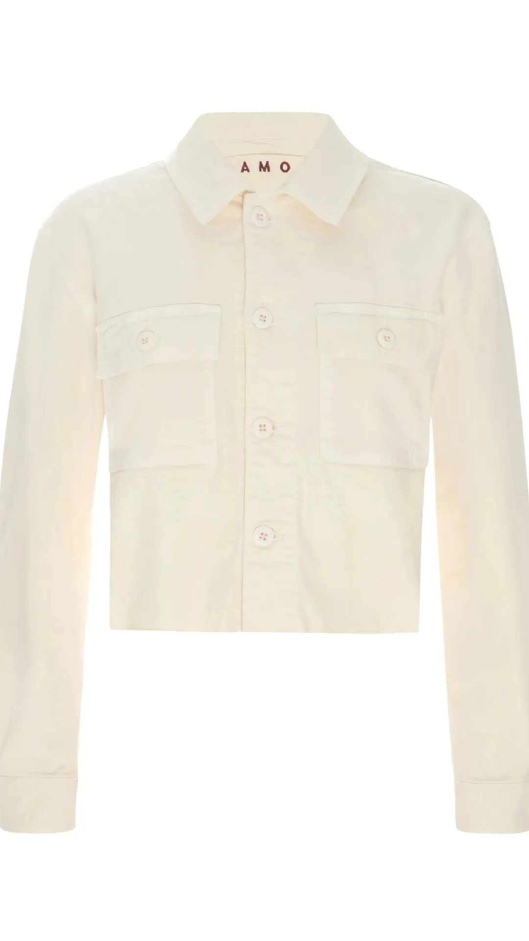 A cropped version of the classic utility jacket, with a collar at the neckline, front patch and flap pockets, and finished with a raw hem for a lived-in look. Made from a perfect mix of cotton and lyocell, the result is a super comfortable all-season fabric.