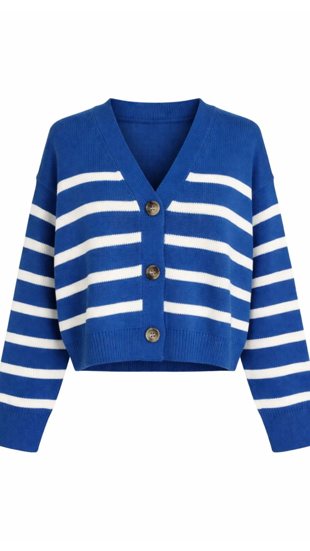 Layer up with the Carter Striped Cardigan, your new spring essential that brings bold blue stripes and undeniable charm to every outfit. This playful piece delivers instant personality with its eye-catching color blocking, perfect for adding that trending pop of color to neutral basics or mixing with your favorite prints. Lightweight and versatile, it’s the go-to cardigan for effortless style that keeps you looking fresh and fashion-forward all season long.