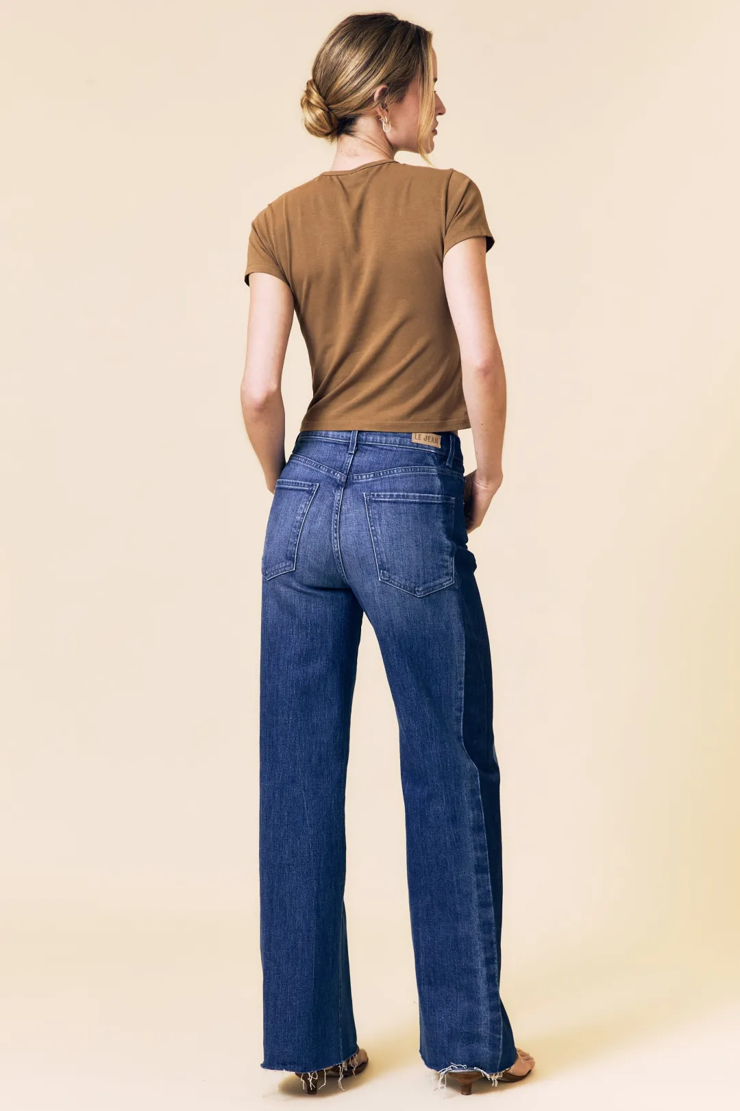 - High rise wide leg jeans with tuxedo stripes/contrast wash