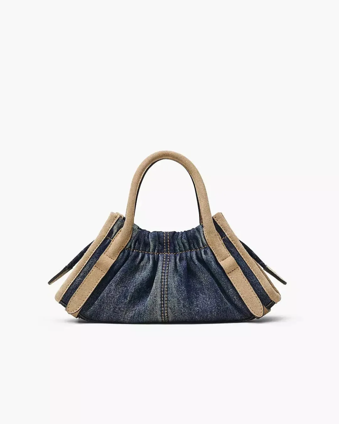 Sculpted from high-low washed denim and Italian suede, this chic essential features a supple, lived-in drape. Taking inspiration from iconic archival design elements, it showcases signature scrunch-detailing and antique-inspired hardware. Lightweight and effortlessly versatile, it’s spacious enough for all your essentials, yet polished enough to go anywhere with ease.
