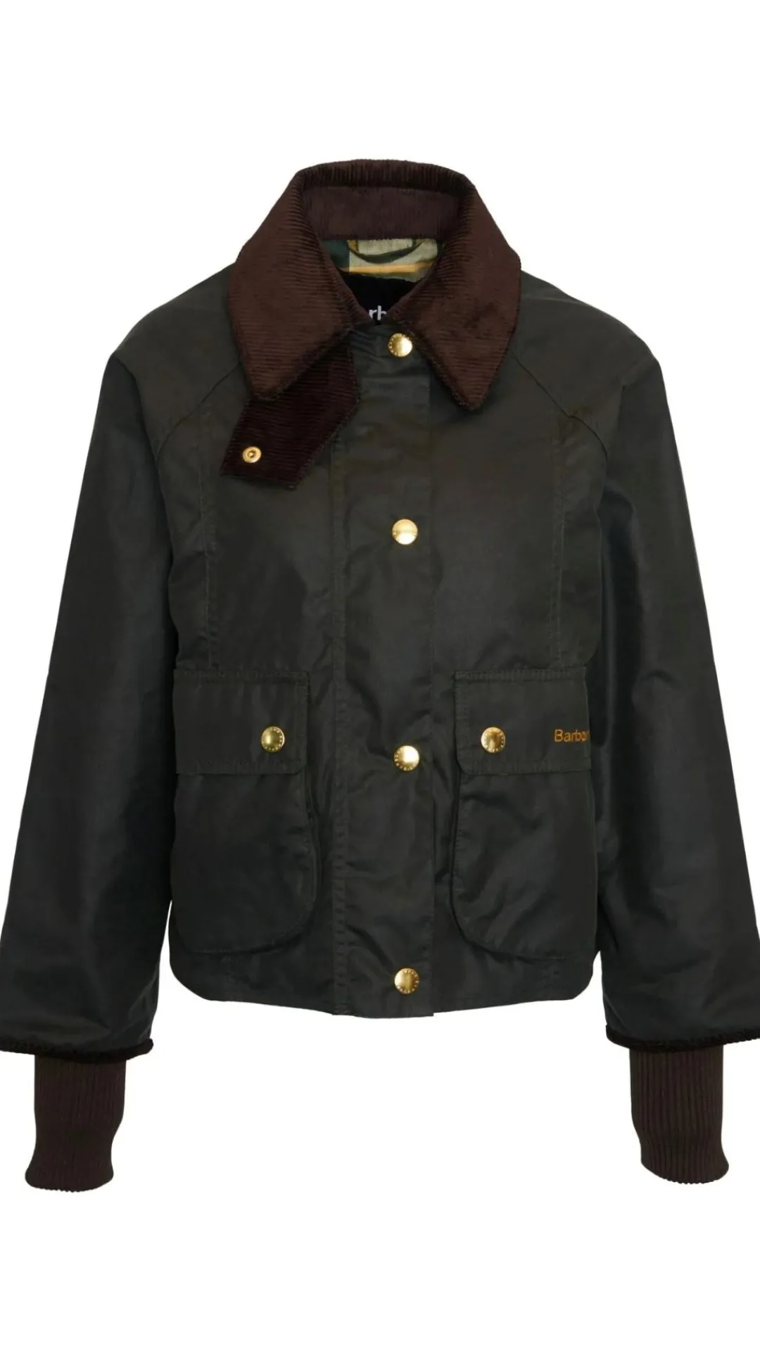 The Beadnell waxed jacket has been a part of Barbour’s signature waxed jacket selection since 2010, offering a feminine, tailored rendition of the best-selling men’s Bedale waxed jacket to the collection. This season, the Beadnell takes on a modern new look as the Barbour Cropped Beadnell Waxed Jacket displays oversized details featured on the original style. With large, gold-tone, branded snap buttons and the traditional saddle pockets, this style is complete with a cord collar and exaggerated elasticated cuffs for a contemporary touch.