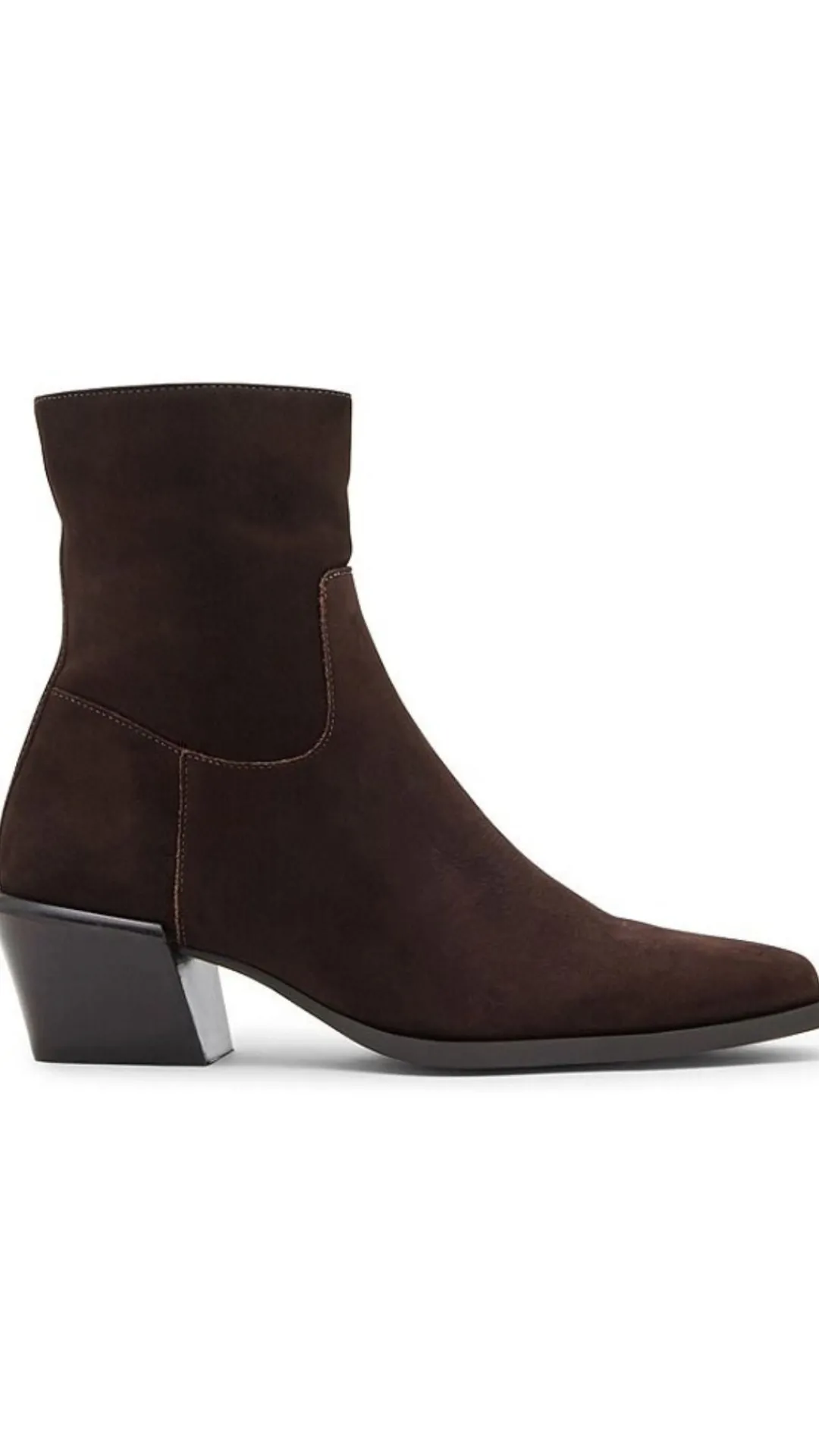 From Steve Madden, the Daney Suede Block Heel Ankle Booties feature: