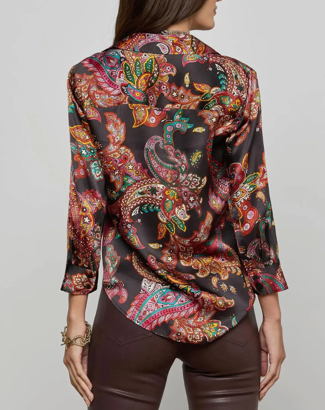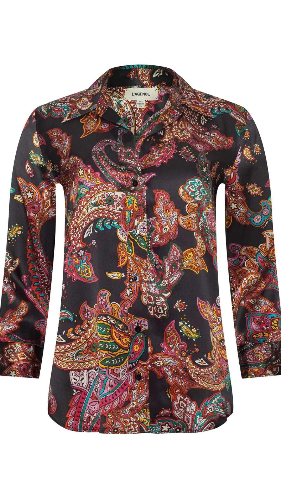 Meet the iconic silk button-down that belongs in every wardrobe. Our signature three-quarter sleeve shirt is back in a black/red multi paisley floral print.