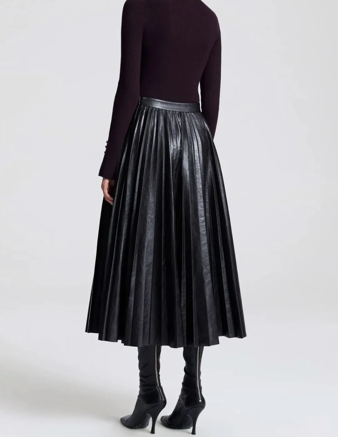 A voluminous midi crafted from supple faux leather with crisp pleating.