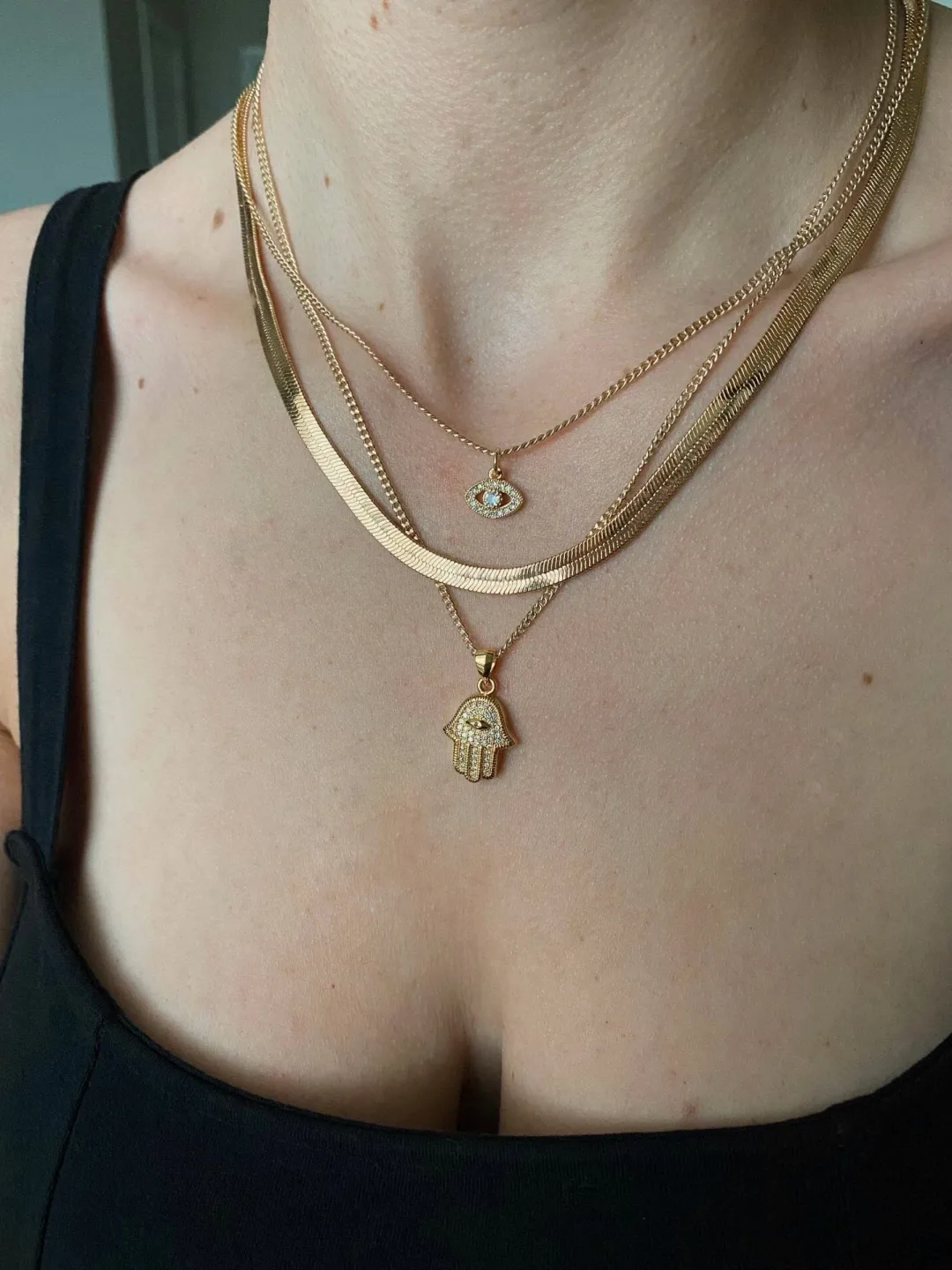 The Eye of Protection necklace serves as a symbol deeply rooted in protective energies.